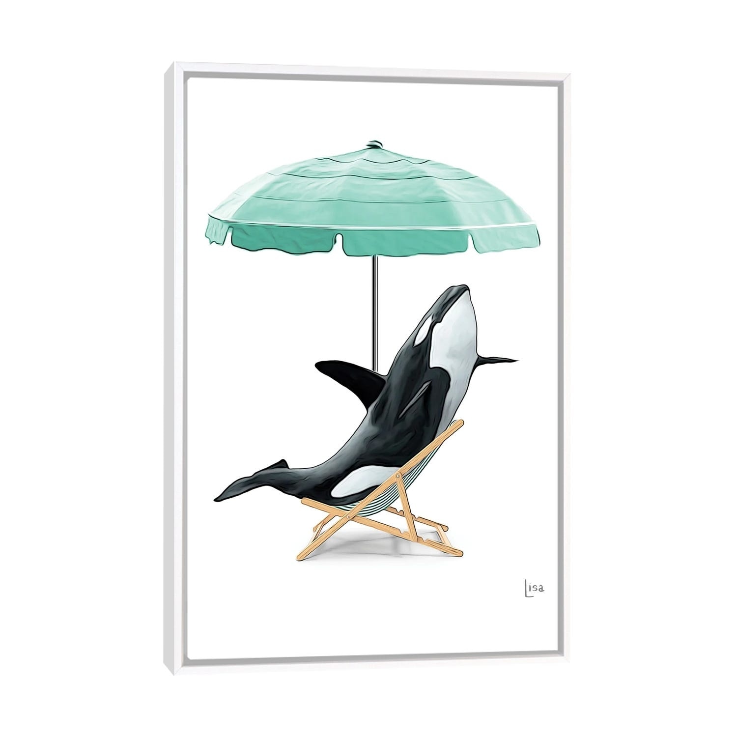 iCanvas "Whale At the Beach on Deck Chair And Umbrella" by Printable Lisa's Pets Framed