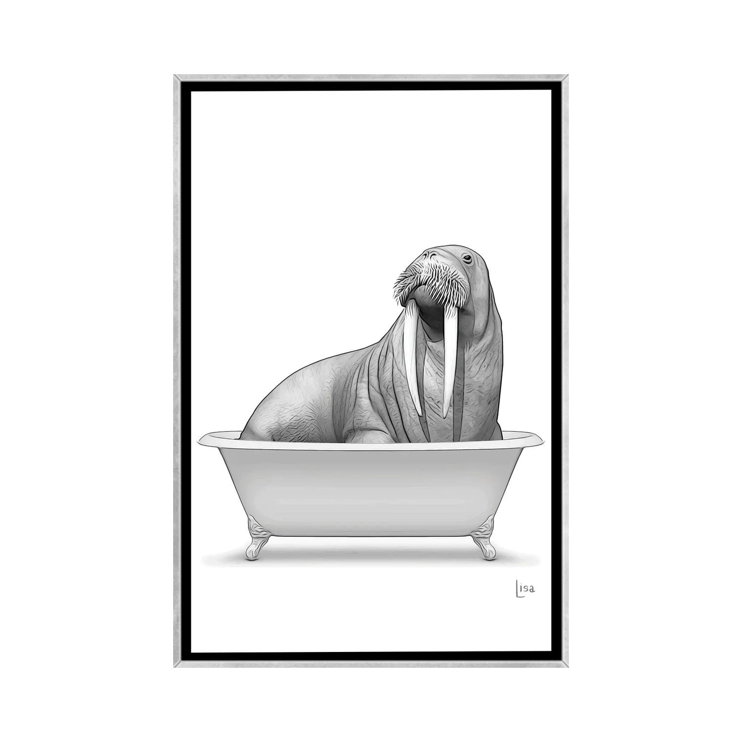 iCanvas "Walrus In Bathtub" by Printable Lisa's Pets Framed