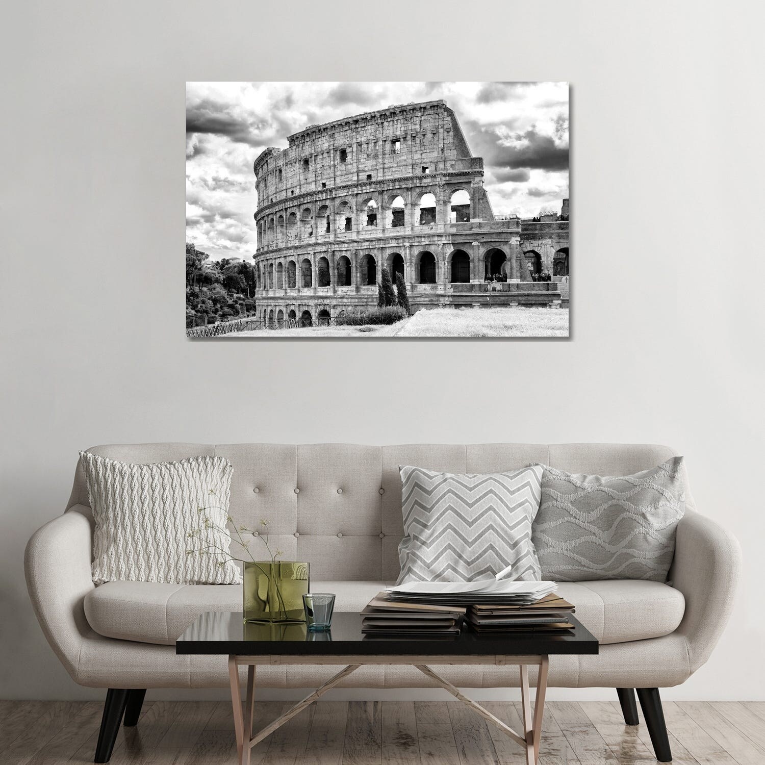 iCanvas "Colosseum In Black & White" by Philippe Hugonnard Framed Canvas Print