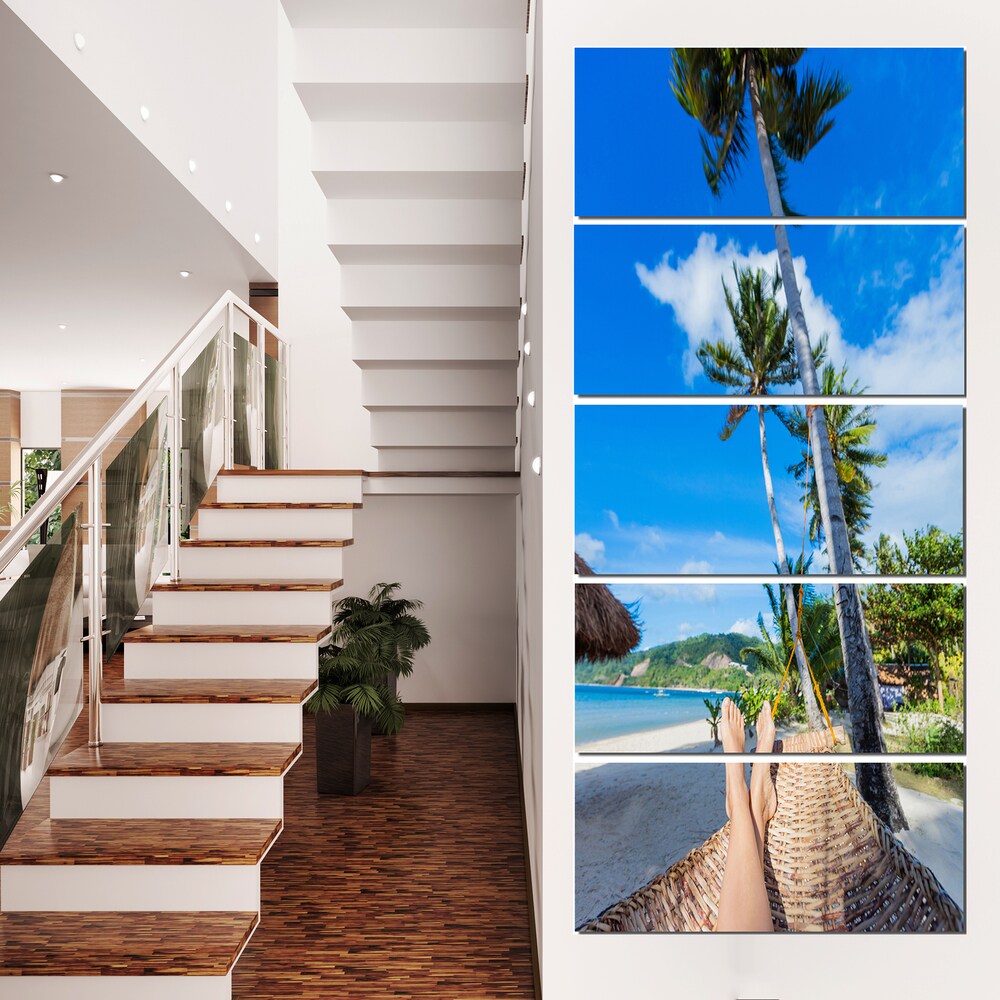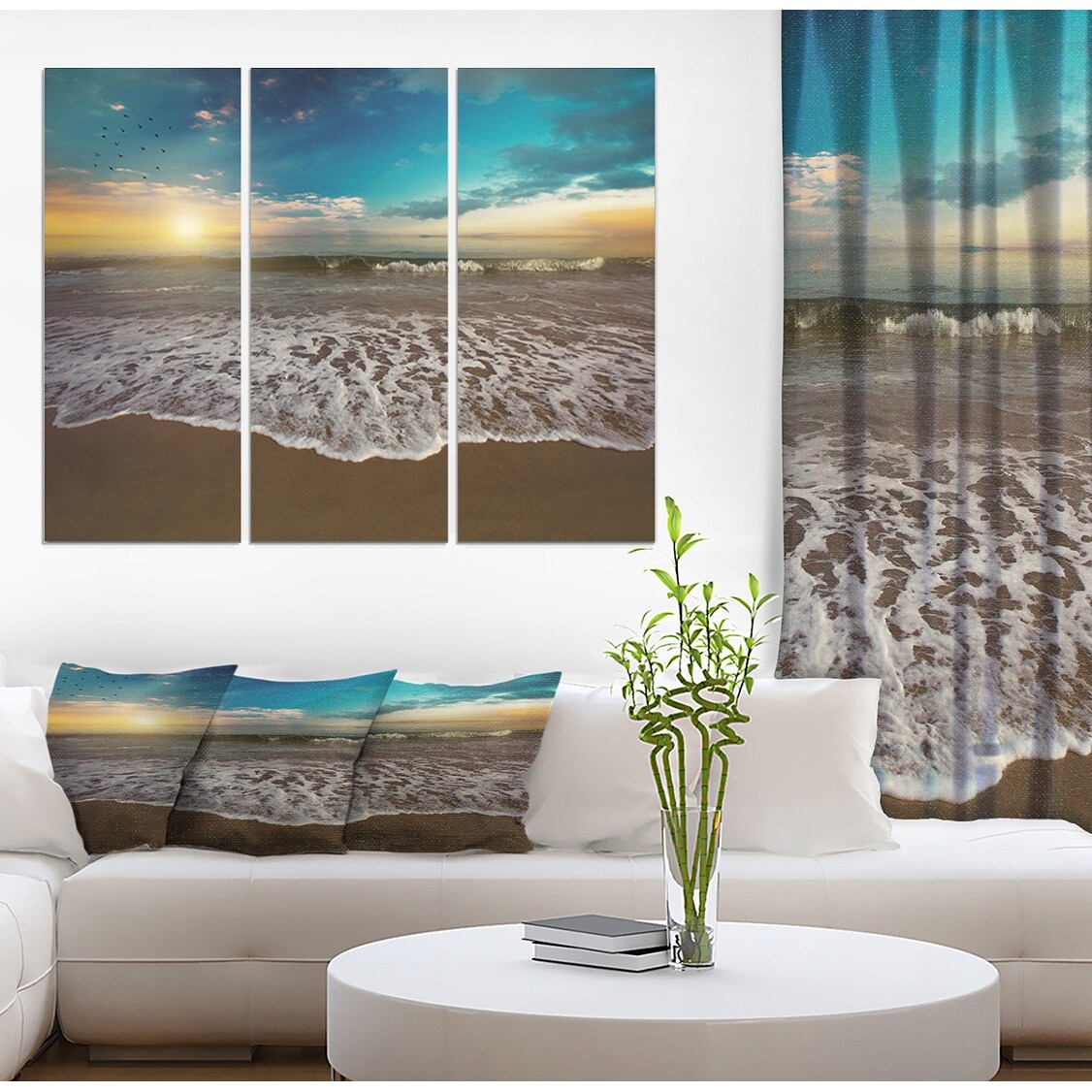 Designart "Beach sunset in Blue Sky" Sea & Shore Photography on Wrapped Canvas set