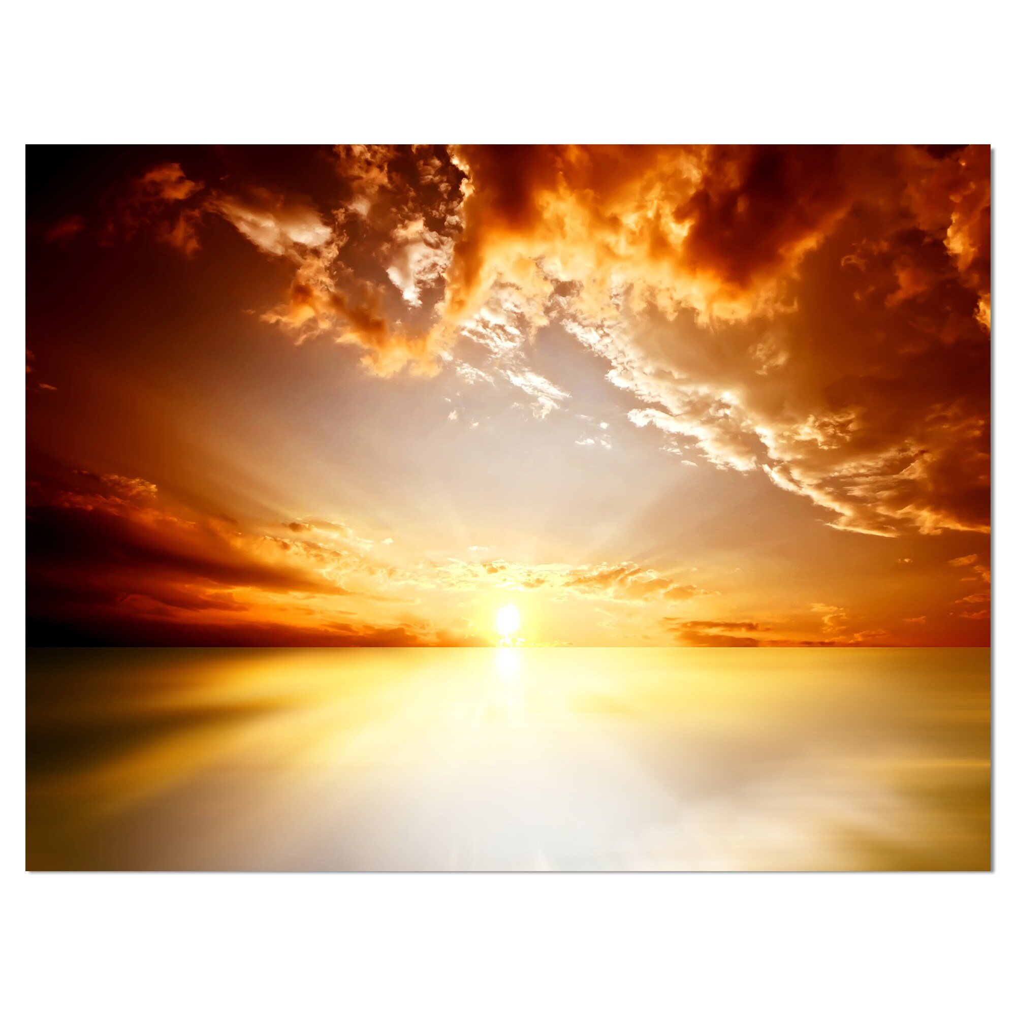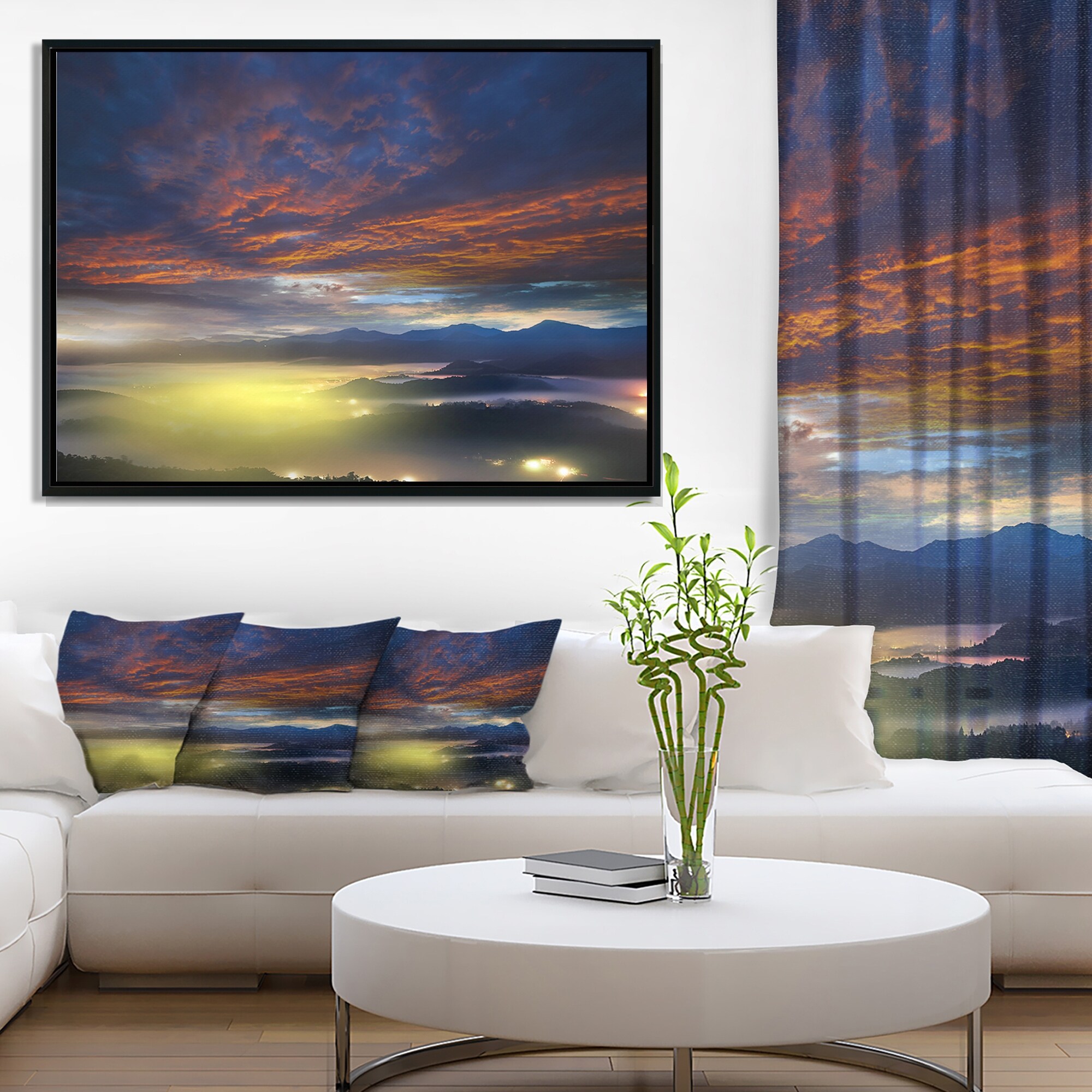Designart "Yellow Sunlight and Fiery Clouds" Landscape Photography Framed Canvas Print