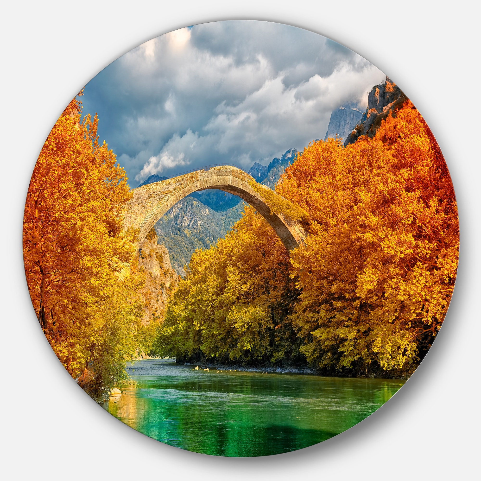 Designart 'Konitsa Bridge' Photography Round Wall Art