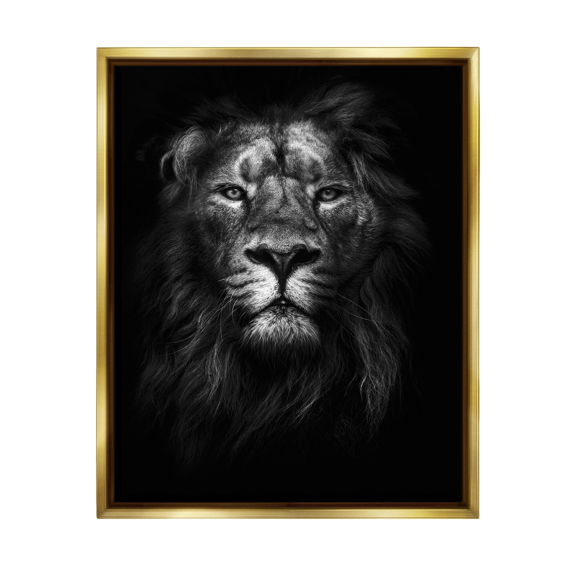 Stupell King of the Jungle Lion in Shadows Black and White Photography Floater Frame