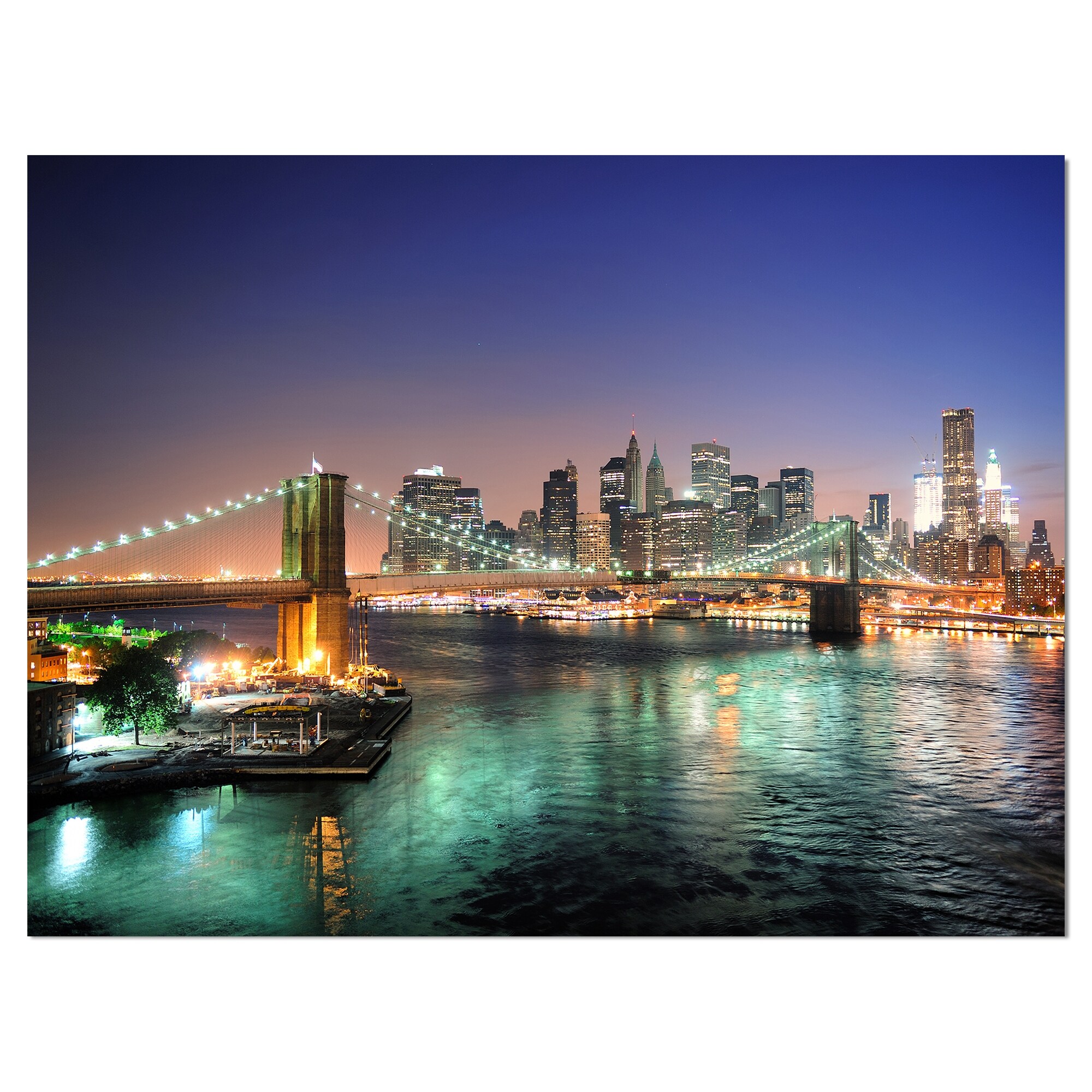 Designart "New York City Manhattan downtown" Cityscapes Photography on Wrapped Canvas - Purple