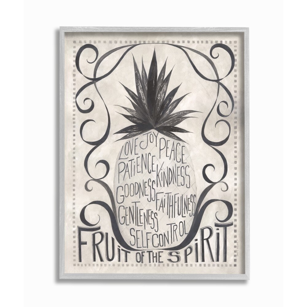 Stupell Grey and White Rustic Pineapple Fruit of the Spirit Typography, 11 x 14, Design By Artist Cindy Shamp - Multi-Color