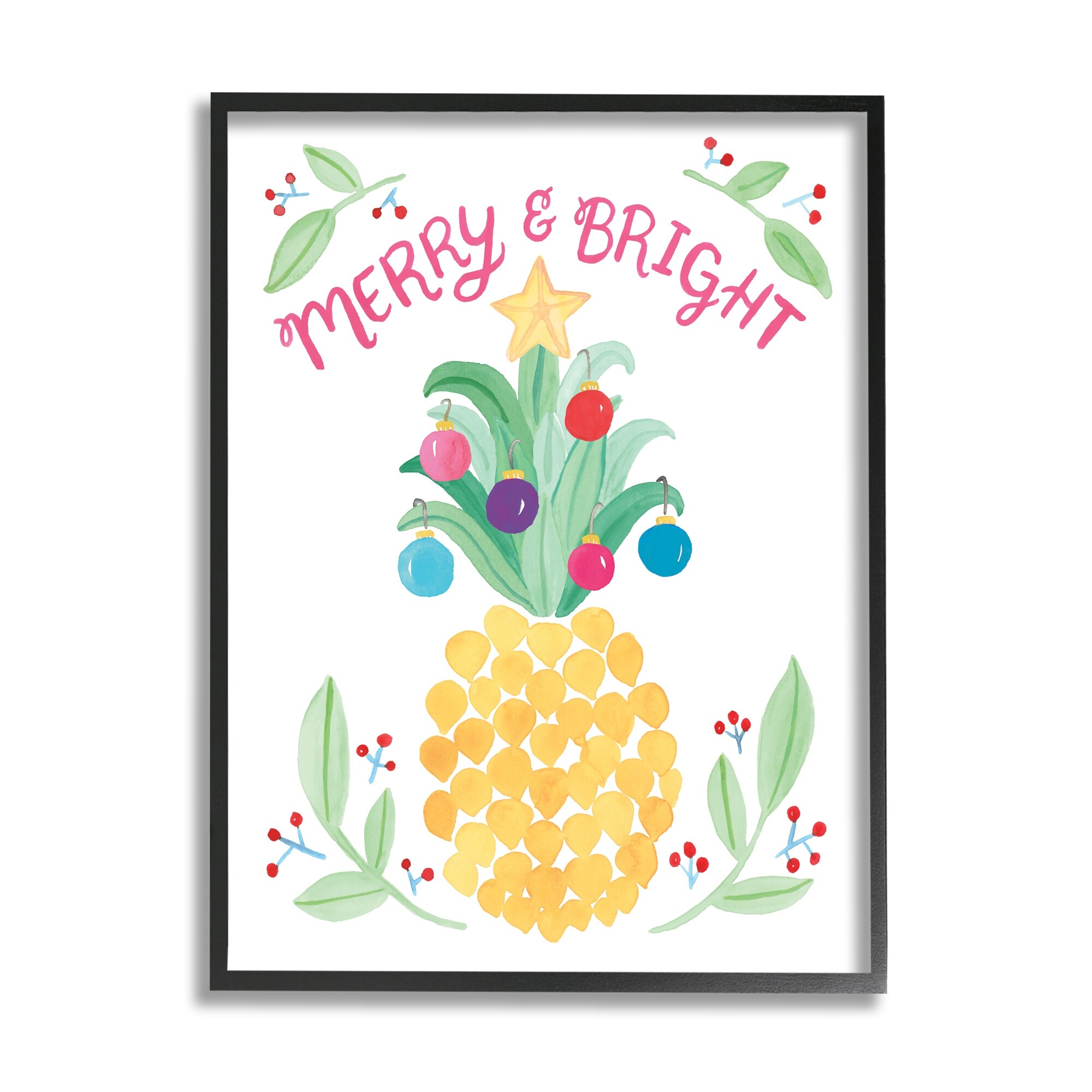 Stupell Merry & Bright Ornamental Pineapple Watercolor Detail Framed Wall Art - Multi-Color