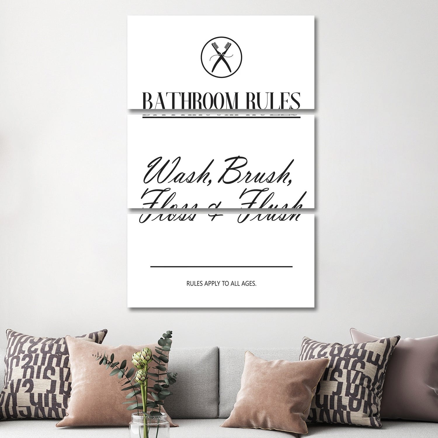 iCanvas "Bathroom Rules" by Pixy Paper 3-Piece Canvas Wall Art Set