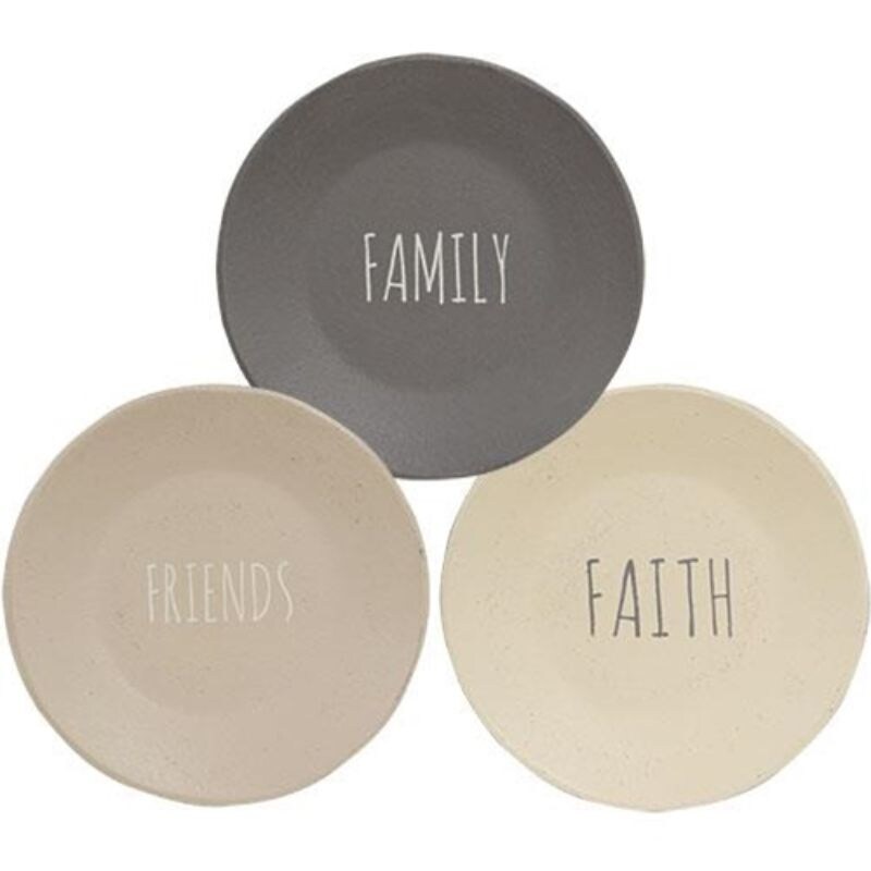 Faith Family Friends Plate 3 Asstd. - 6.25" in diameter.