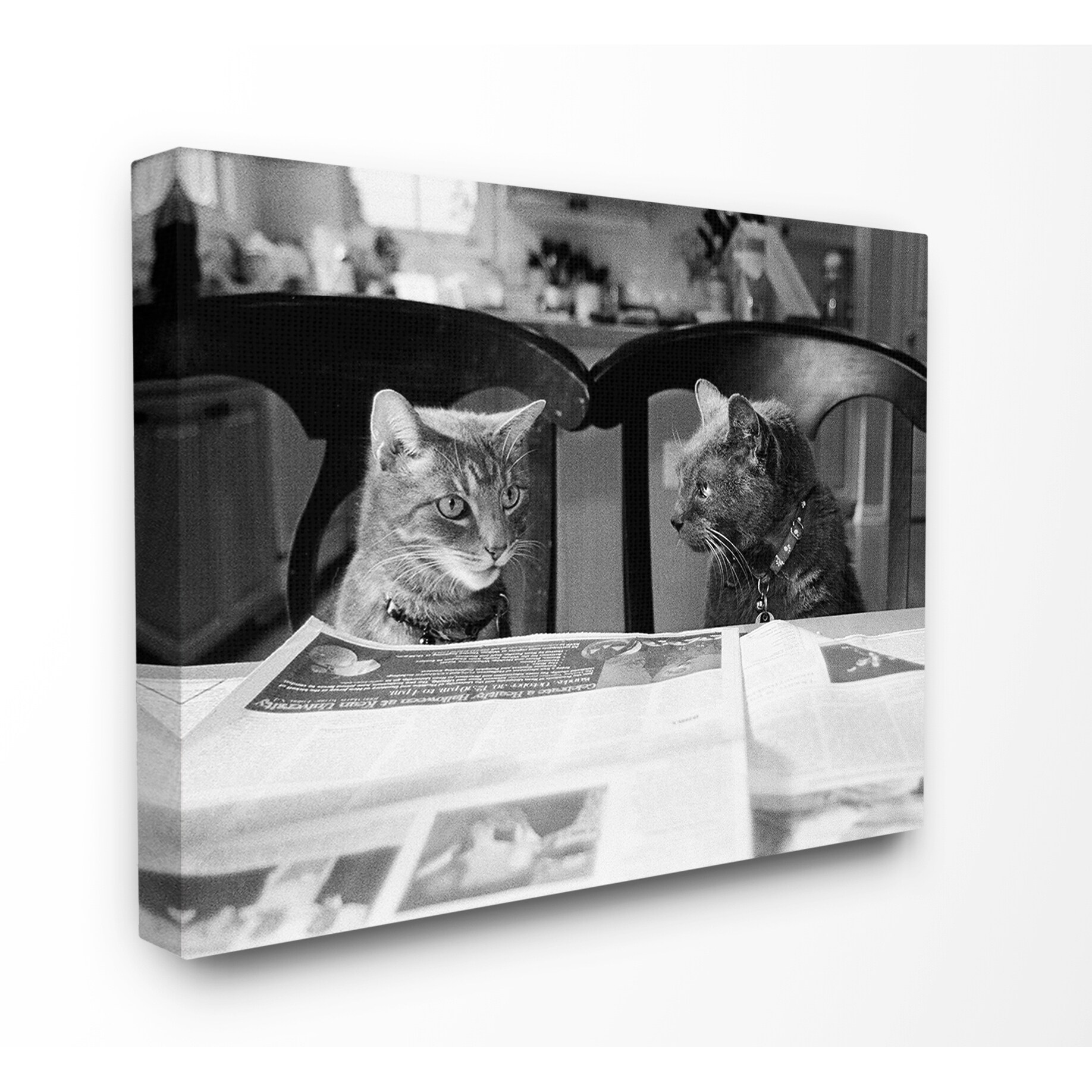 Stupell Black And White Cats Gossiping Before Dinner Canvas Wall Art , 16 x 20, Proudly Made in USA - Multi-color