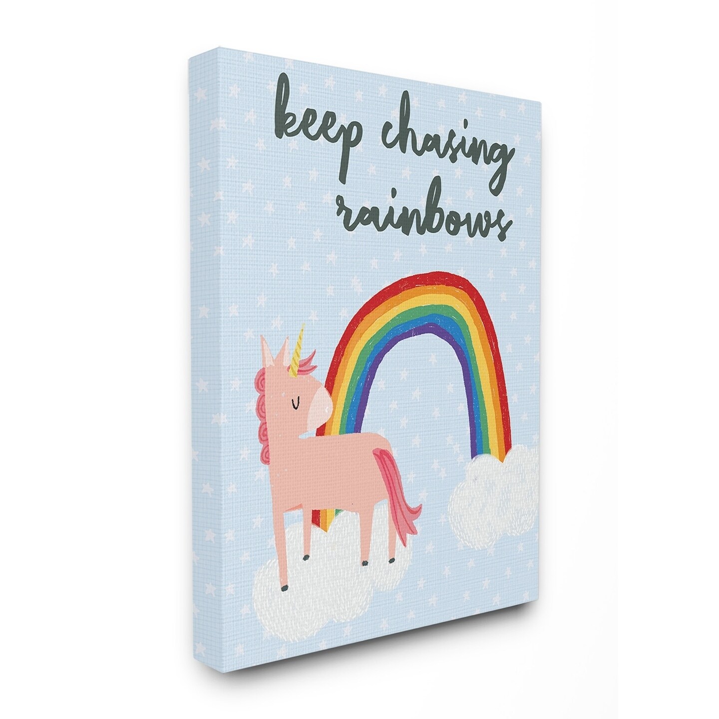 The Kids Room By Stupell Pink Unicorn Keep Chasing Rainbows with Polka Dots Canvas Wall Art, 16 x 20, Proudly Made in USA