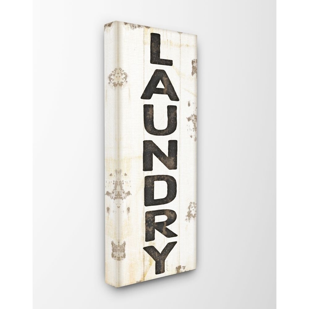 The Stupell Home Decor Black and White Distressed Planked Look Laundry Typography Canvas Wall Art, 10x24, Proudly Made in USA