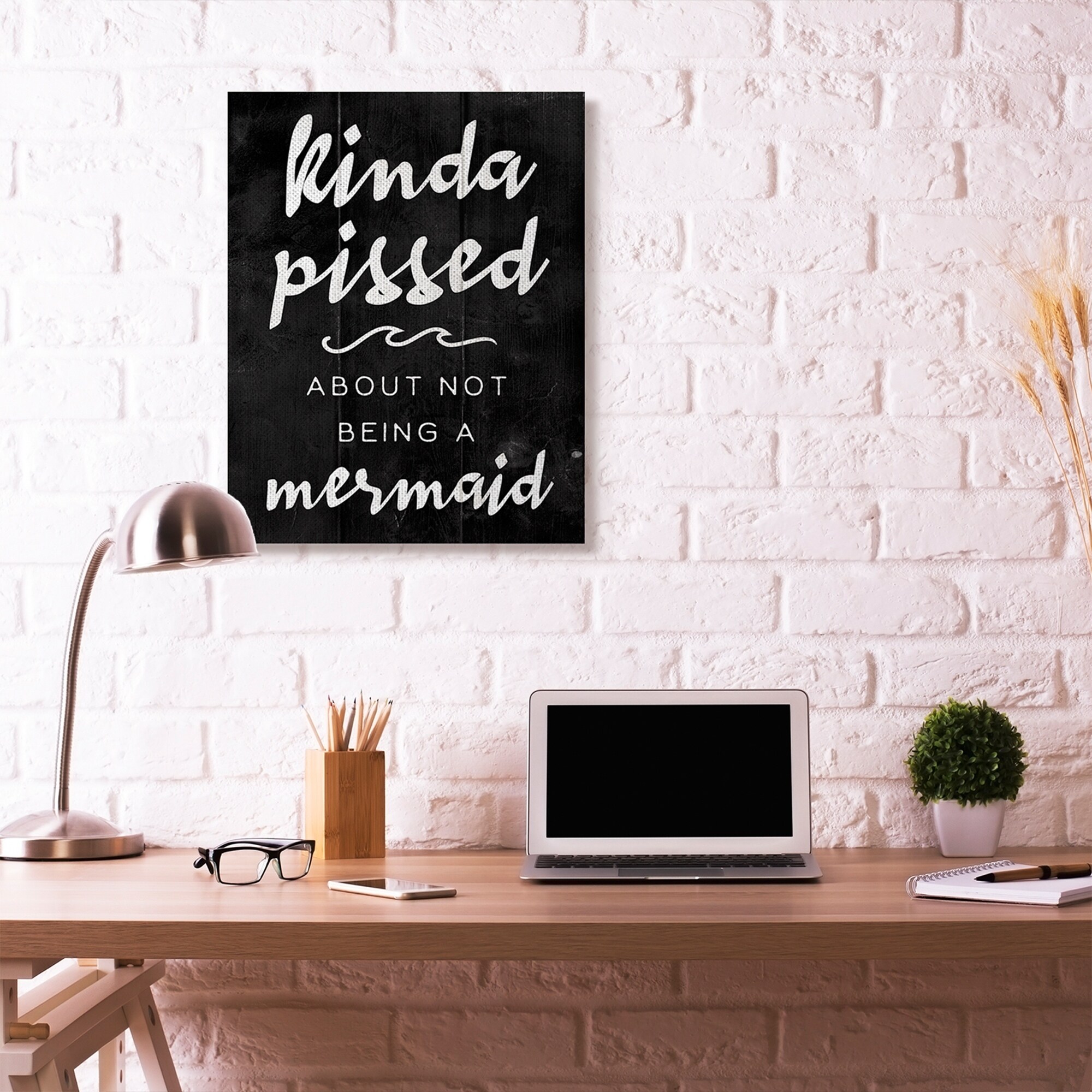 Stupell Industries Mermaid Funny Word Girls Black And White Wood Textured Design,16x20, Proudly Made in USA - Multi-Color