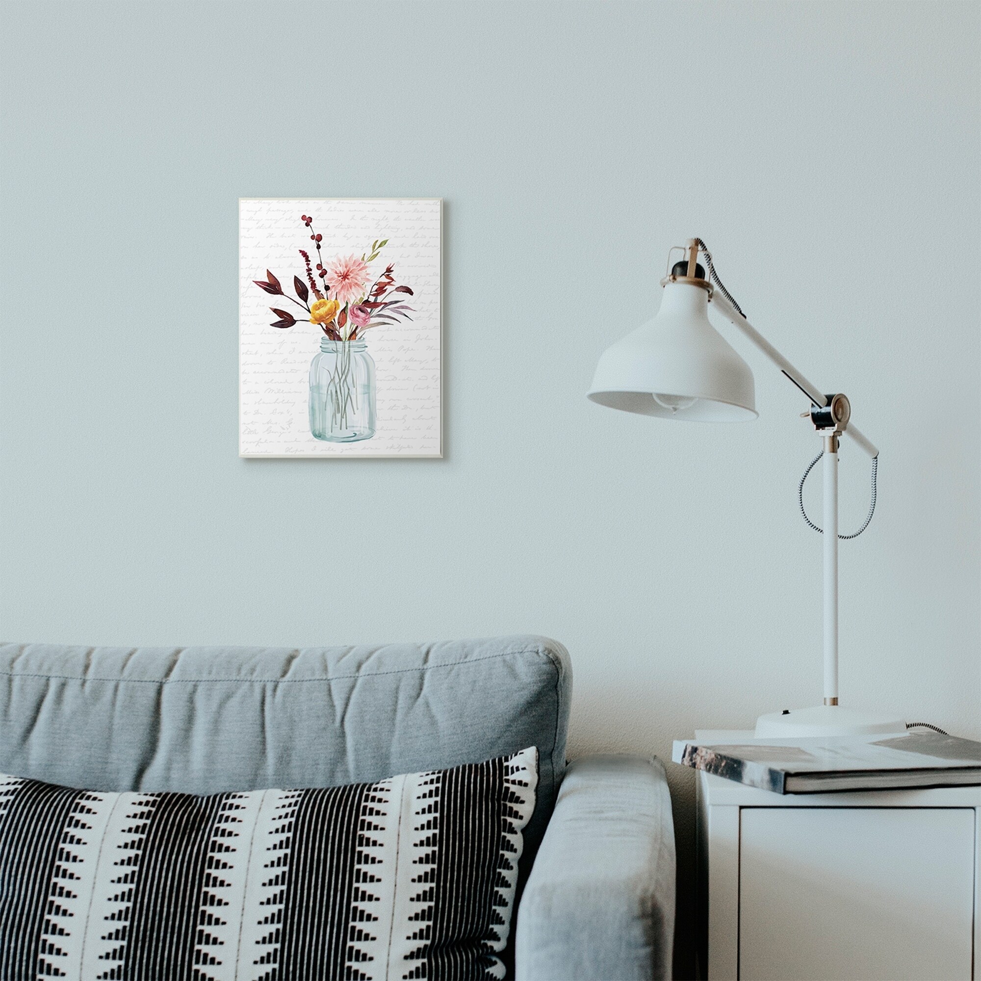 Stupell Industries Jar of Flowers Autumn Red Fall Seasonal Design Wood Wall Art, Proudly Made in USA