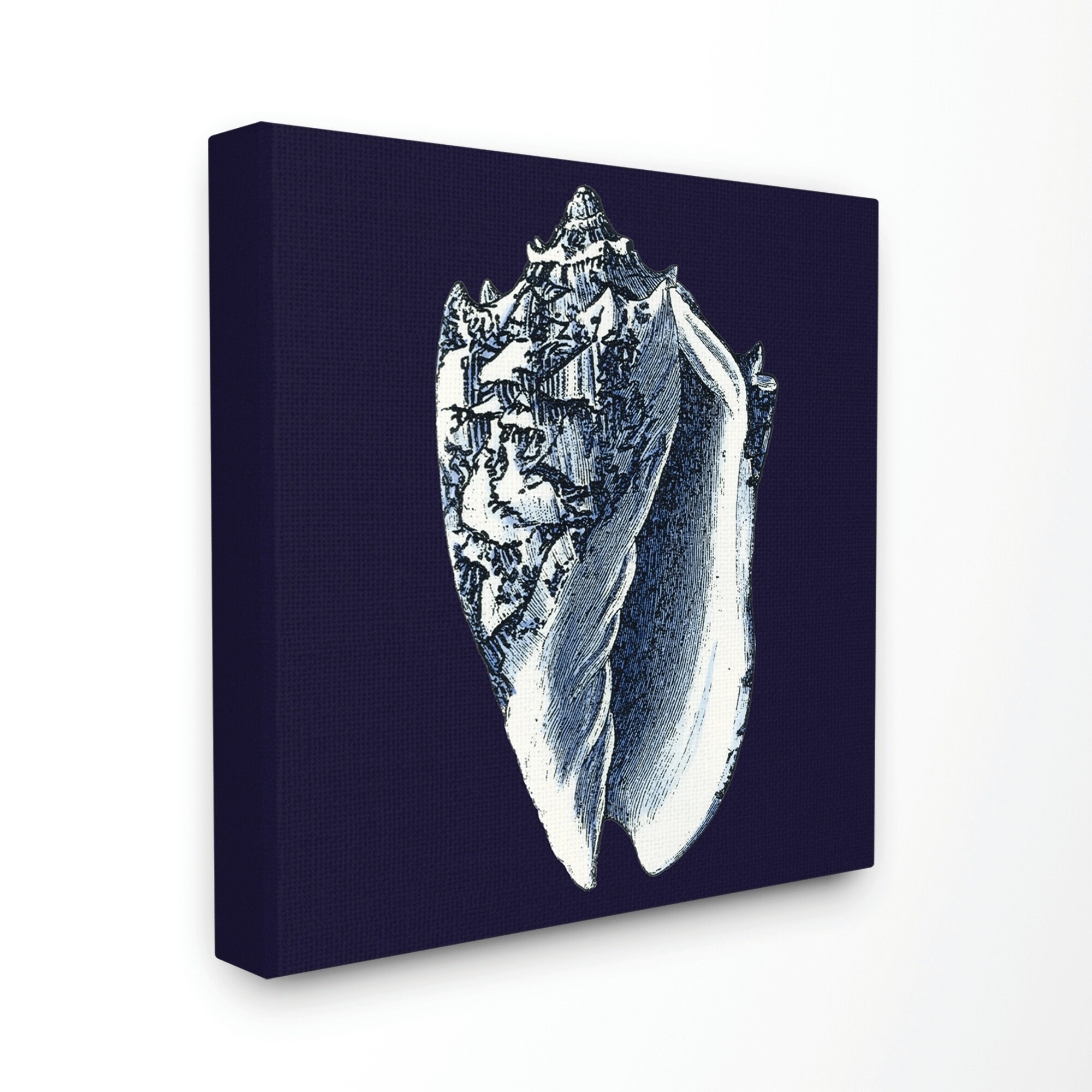 Stupell Industries Distressed Navy and White Conch Shell, Proudly Made in USA - 24 x 24