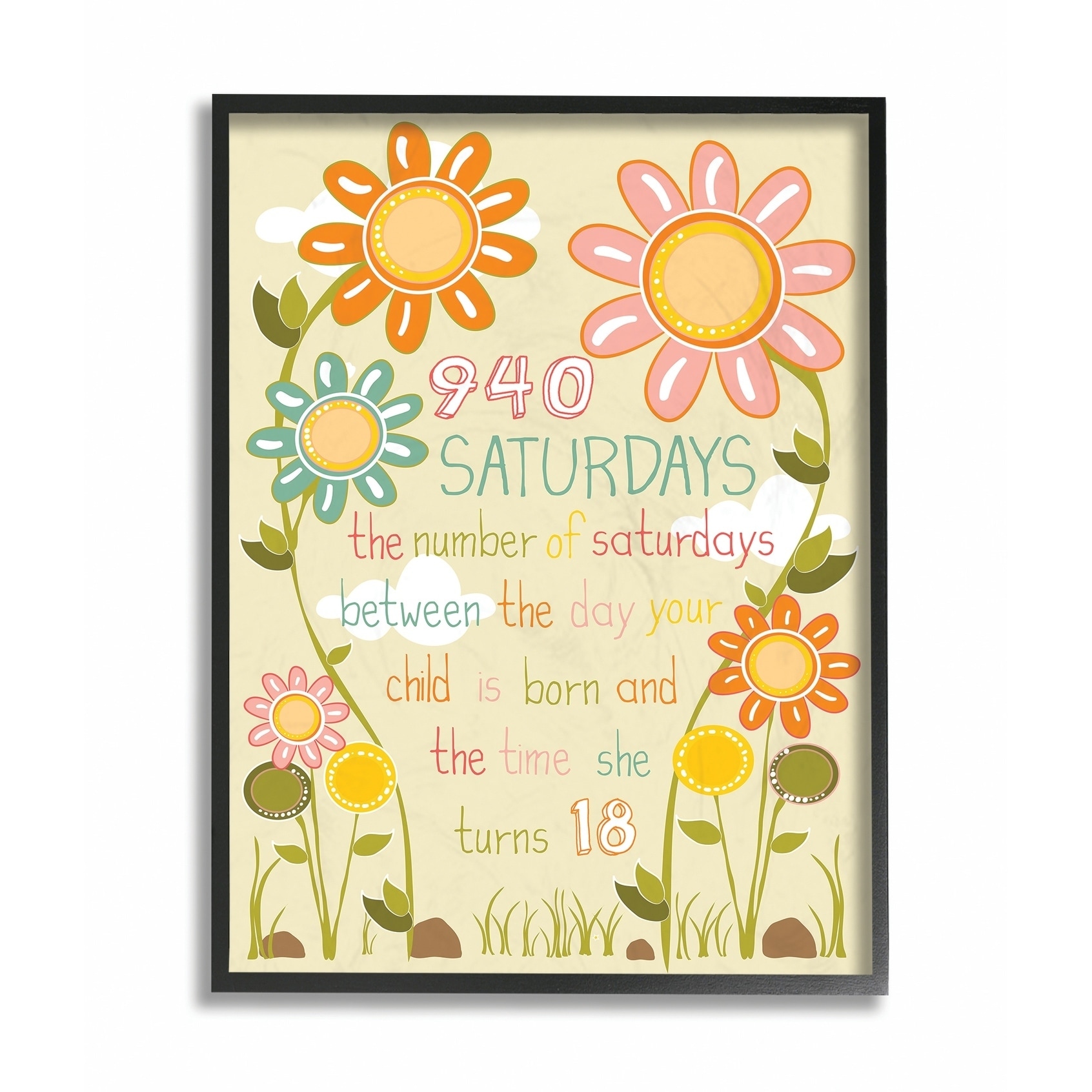 Stupell Floral Graphic 940 Saturdays Art Black Framed, 16 x 20, Proudly Made in USA - 16 x 20