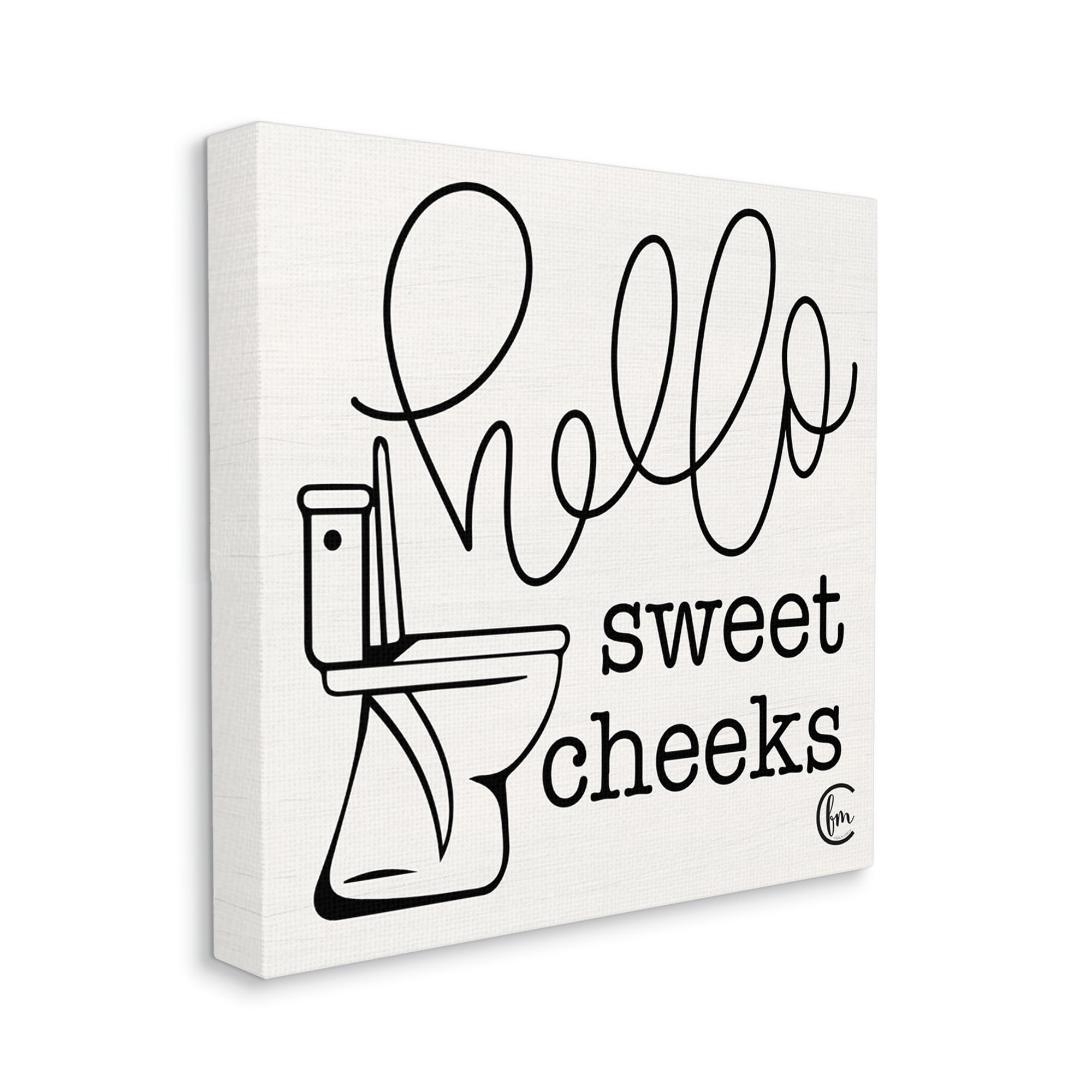 The Stupell Home Decor Toilet Hello Sweet Cheeks Black and White Canvas Wall Art, 17x17, Proudly Made in USA - Multi-Color