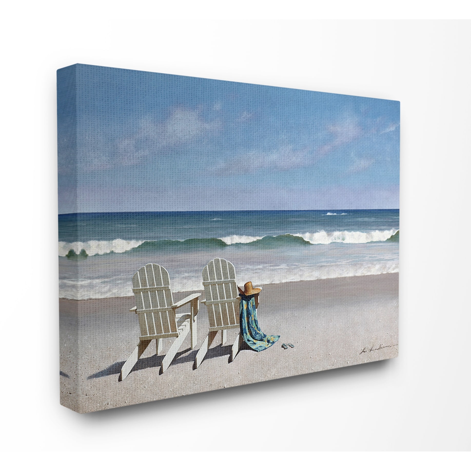 Stupell Two White Adirondack Chairs on the Beach Canvas Wall Art, 16 x 20, Proudly Made in USA - Multi-Color