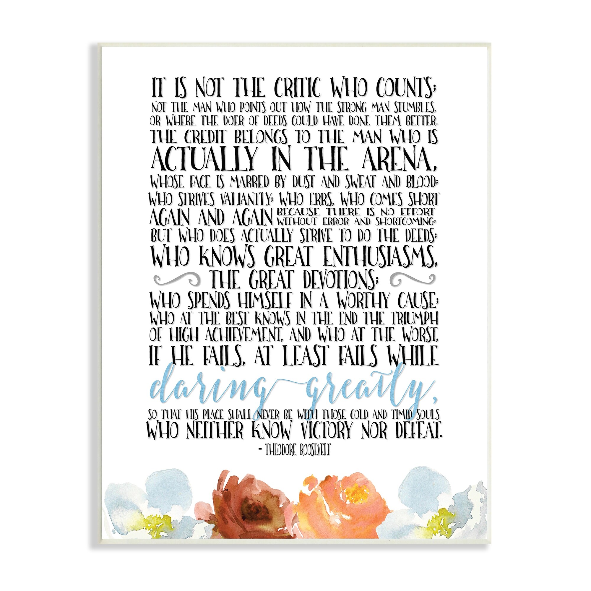 The Stupell Home Decor It Is Not the Critic Who Counts Roosevelt Floral Quote, 10 x 15, Proudly Made in USA - Multi-Color