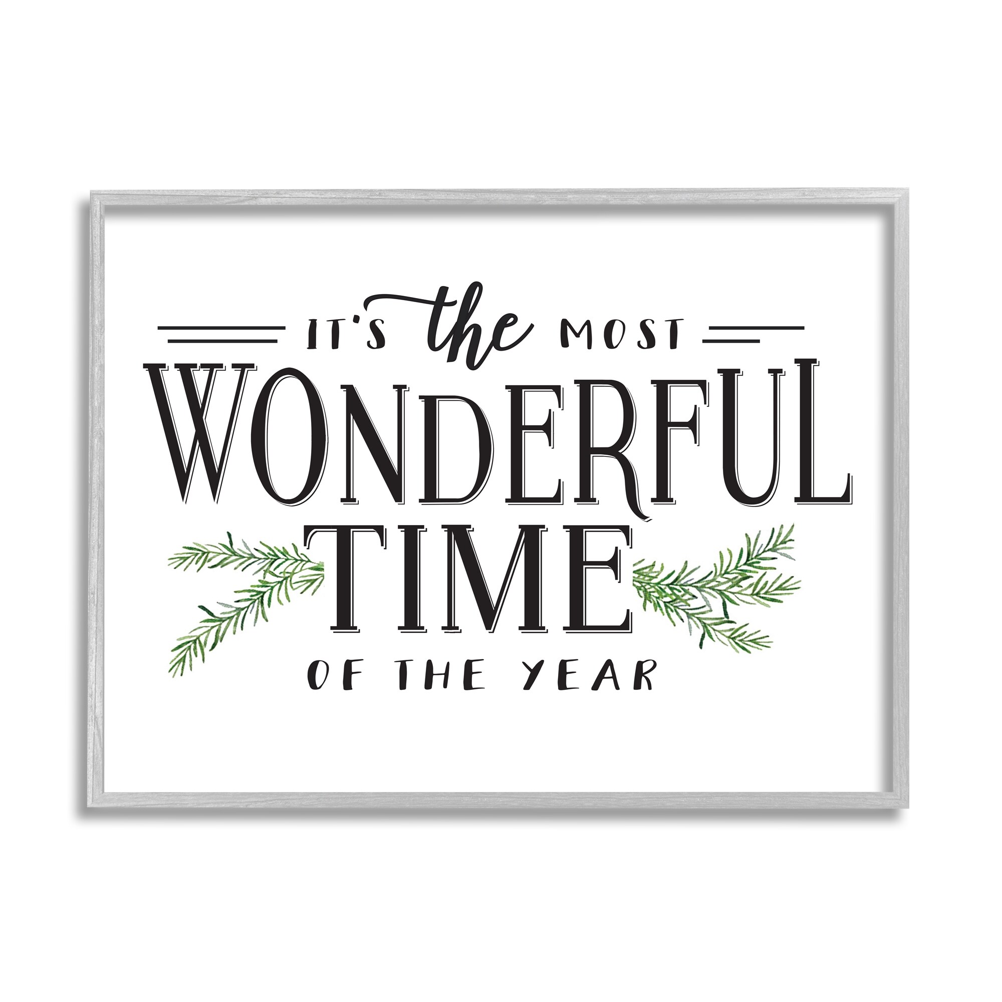 Stupell Most Wonderful Time Christmas Holiday Word Design Framed Wall Art, Proudly Made in USA - White