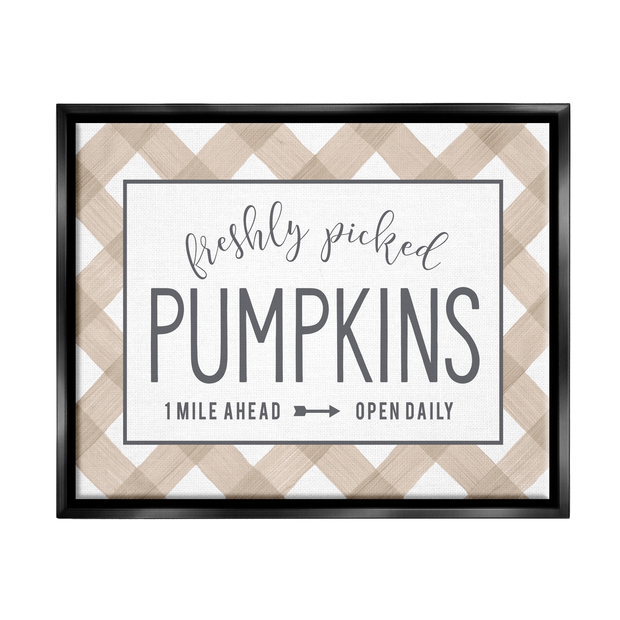 Stupell Freshly Picked Pumpkins Country Farm Plaid Sign Floater Frame, Design by Lettered and Lined
