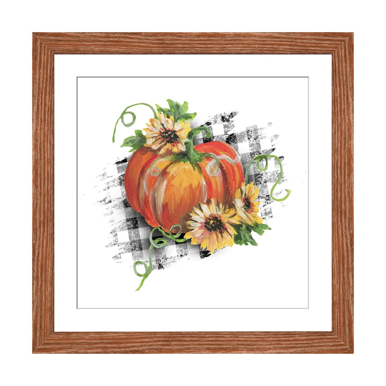 iCanvas "Pumpkin With Sunflowers White Plaid Print" by Ephrazy Graphics