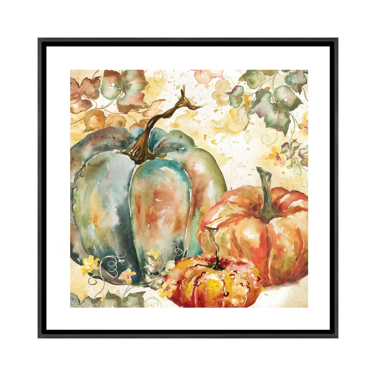 iCanvas "Watercolor Harvest Teal and Orange Pumpkins I" by Tre Sorelle Studios Framed