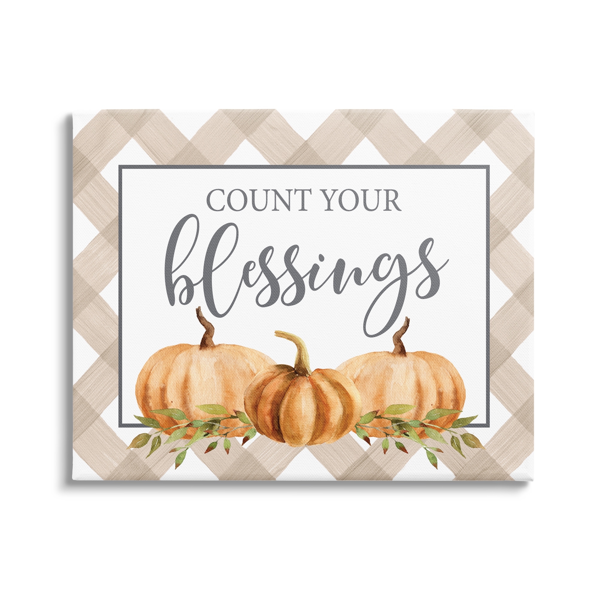 Stupell Industries Count Your Blessings Thankful Pumpkin Tartan Design Canvas Wall Art, Design by Lettered and Lined