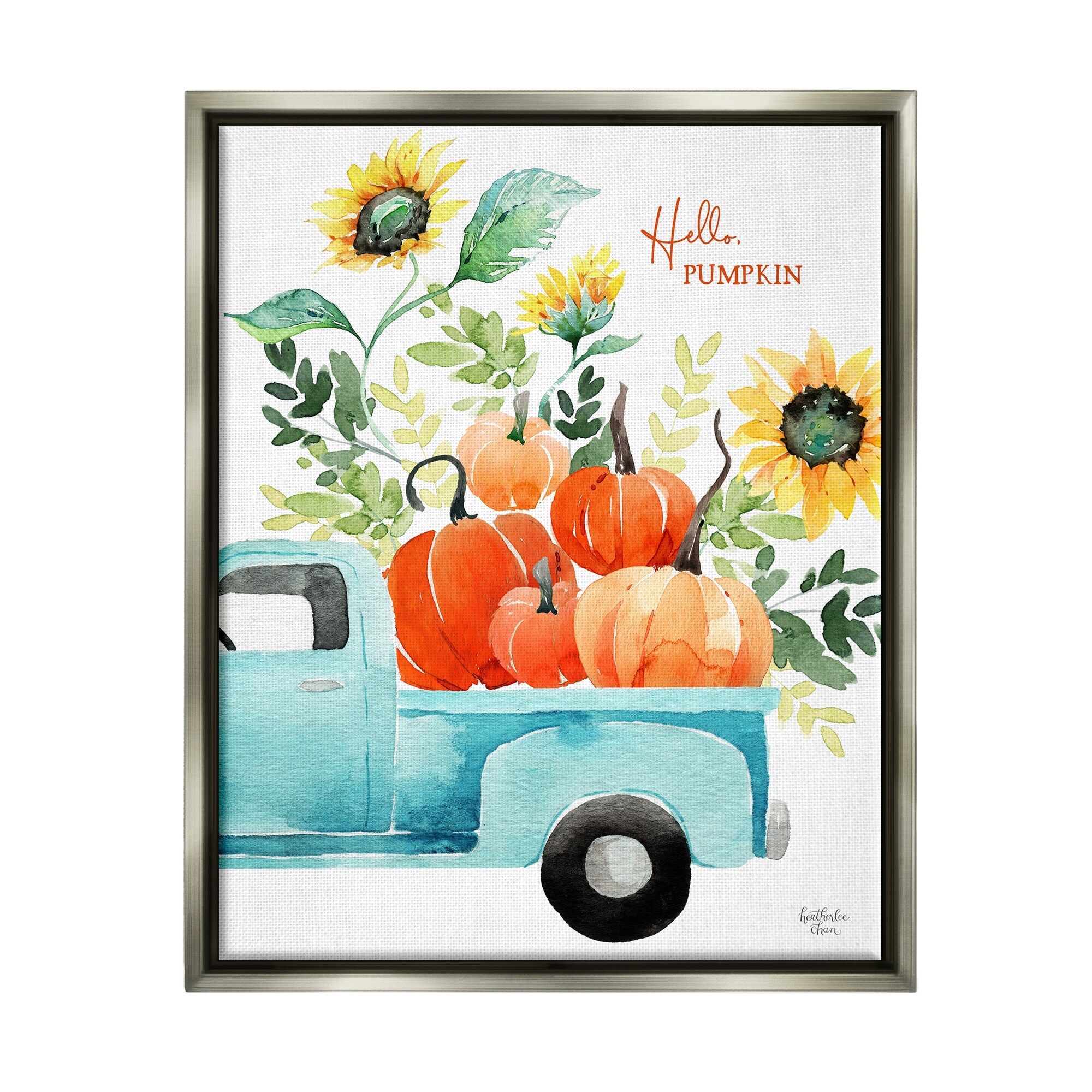 Stupell Industries Hello Pumpkin Autumn Truck Carrying Seasonal Plants Floater Frame, Design by Heatherlee Chan