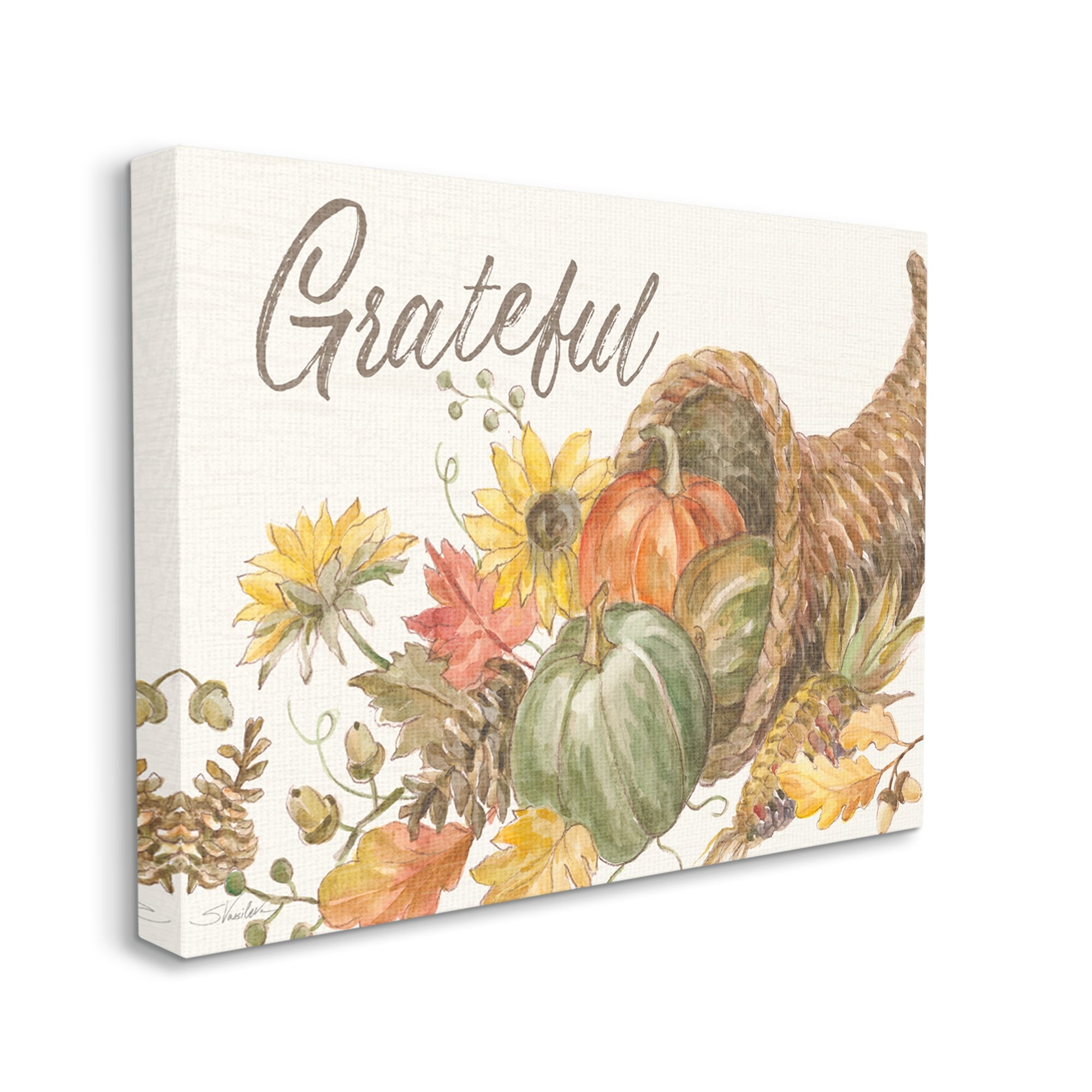 Stupell Grateful Sentiment Autumn Harvest Cornucopia Pumpkins Canvas Wall Art - Orange