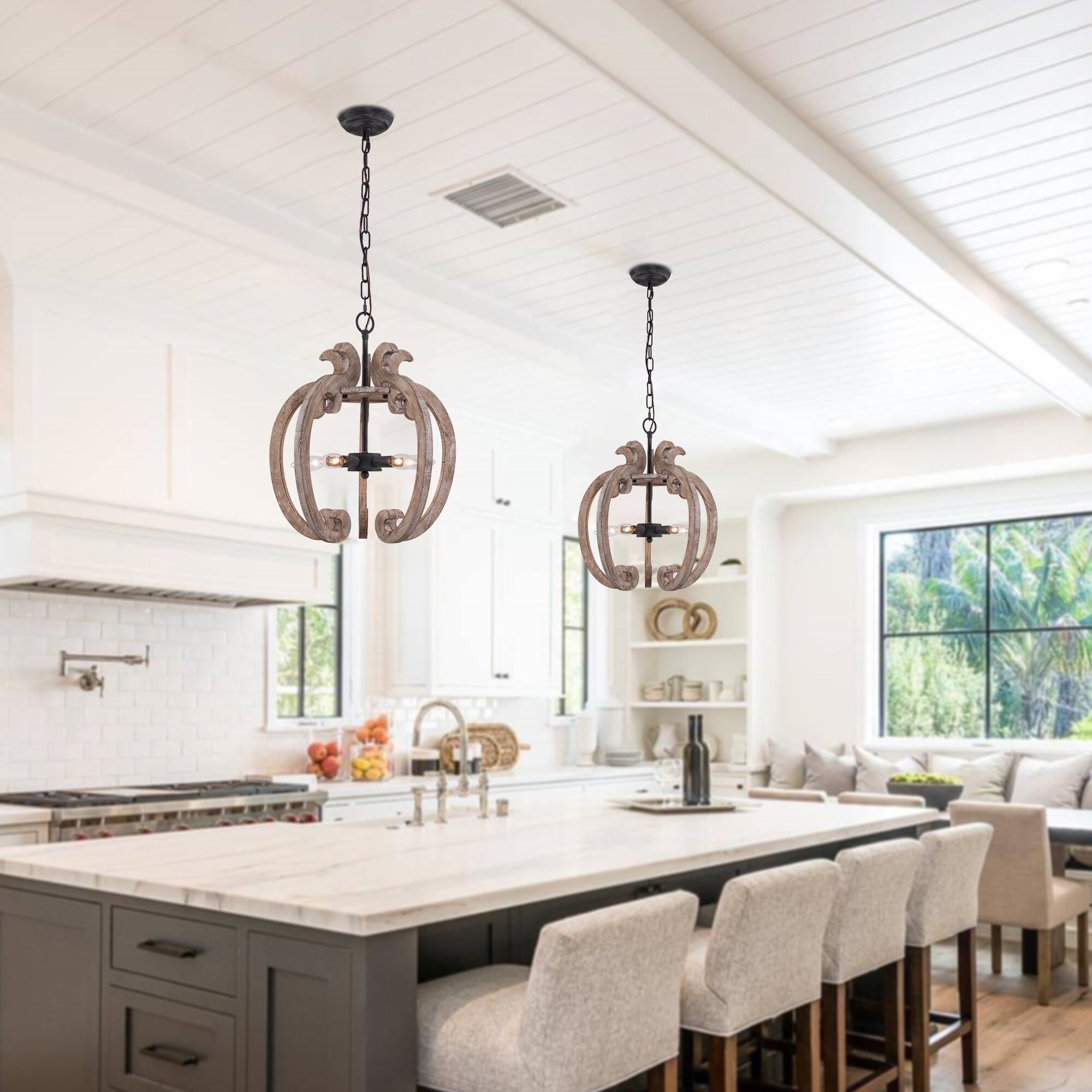 5-Light Wood Pumpkin Chandelier Kitchen Island Pendant Light - 20" X 31"/20" X 32"