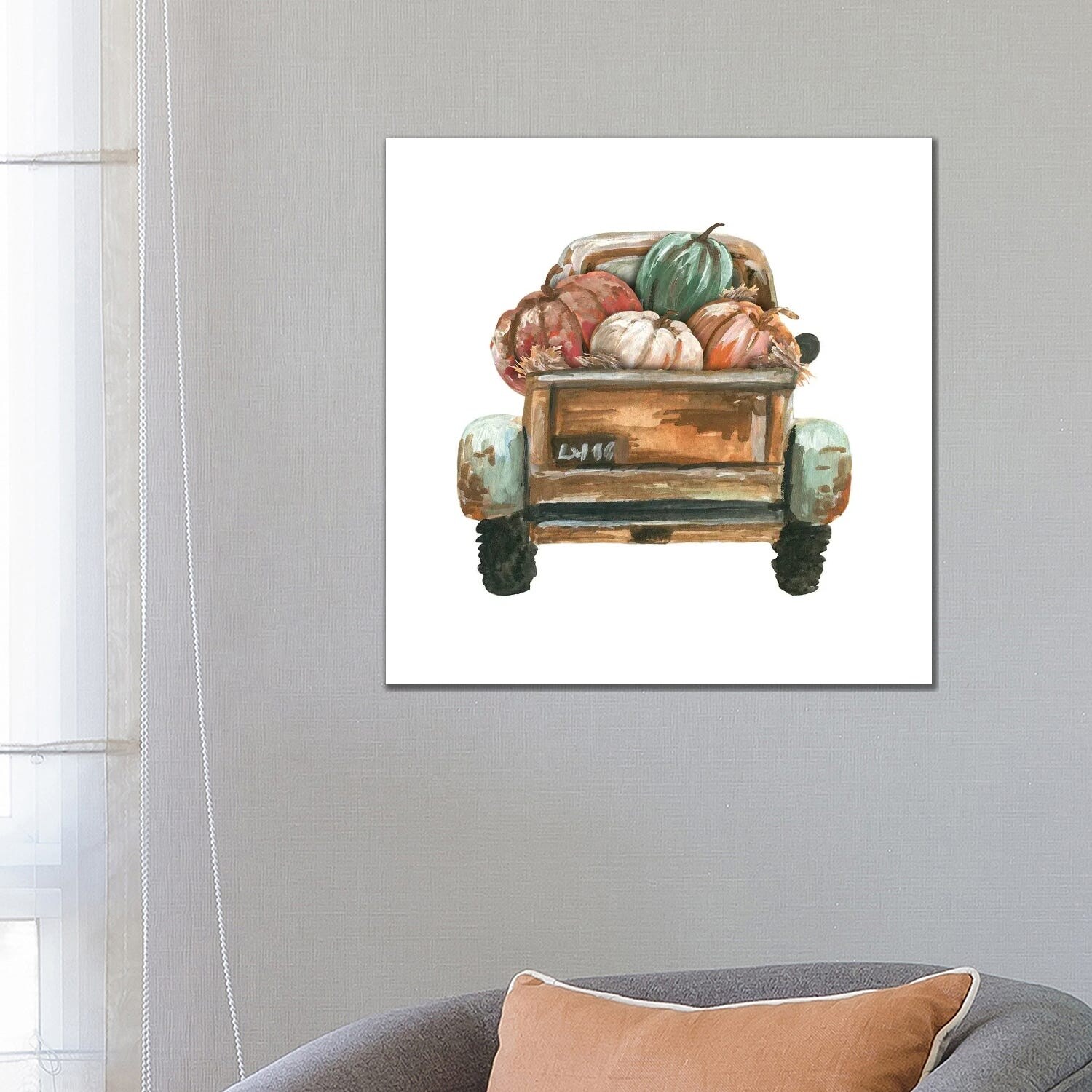 iCanvas "Fall Turquoise Truck Back With Pumpkins" by Ephrazy Graphics Canvas Print