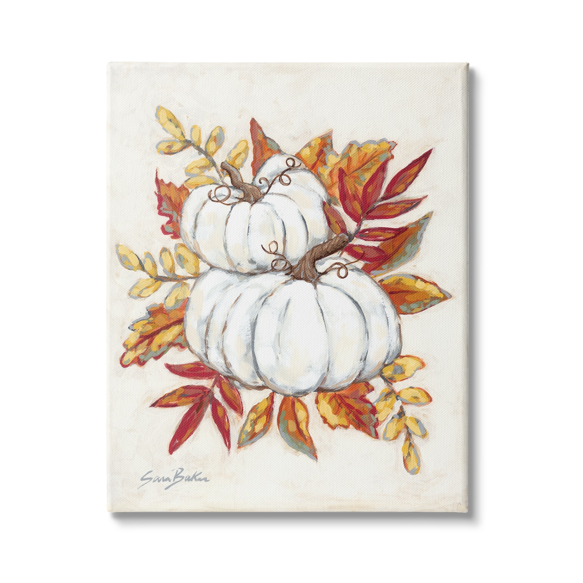 Stupell Industries White Pumpkins Stacked Red Orange Autumn Leaves Canvas Wall Art
