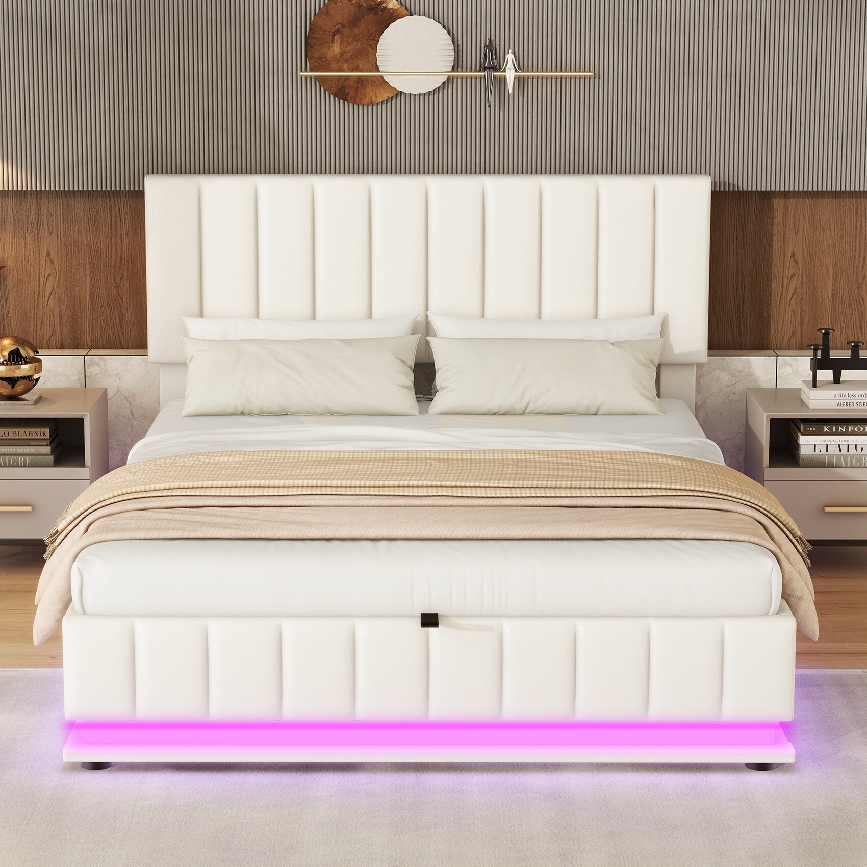 Lift Up Storage Bed Queen Size Platform with LED Headboard