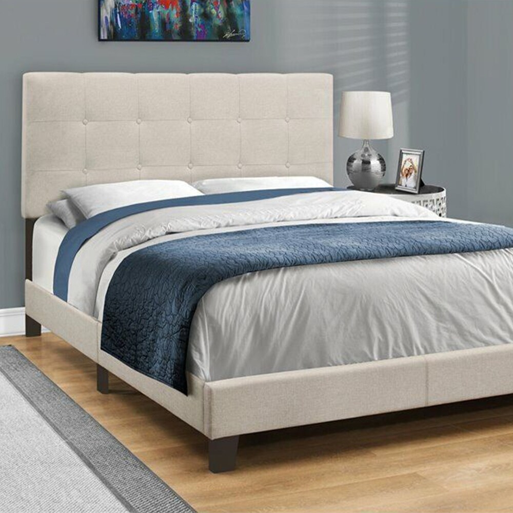 Queen Size Tufted Panel Bed Beige
