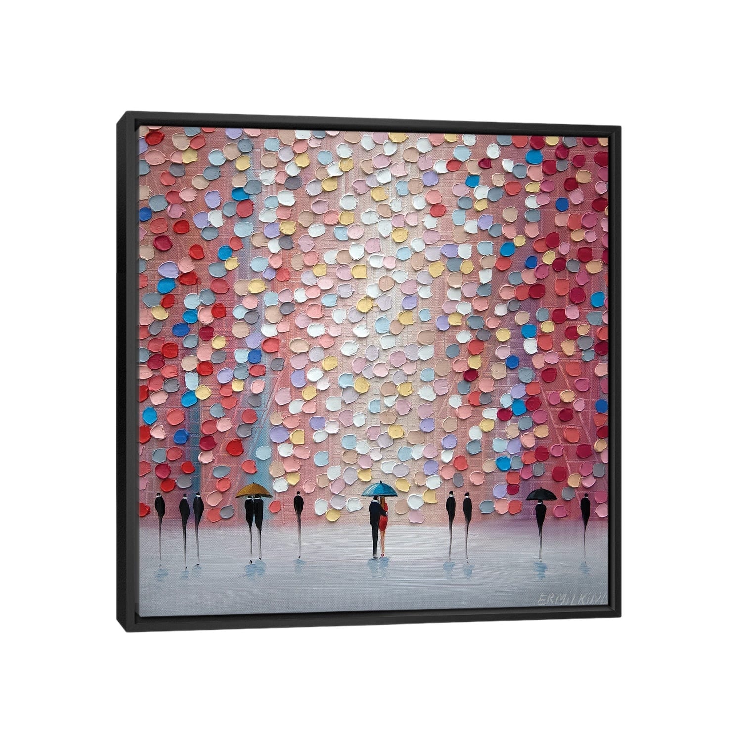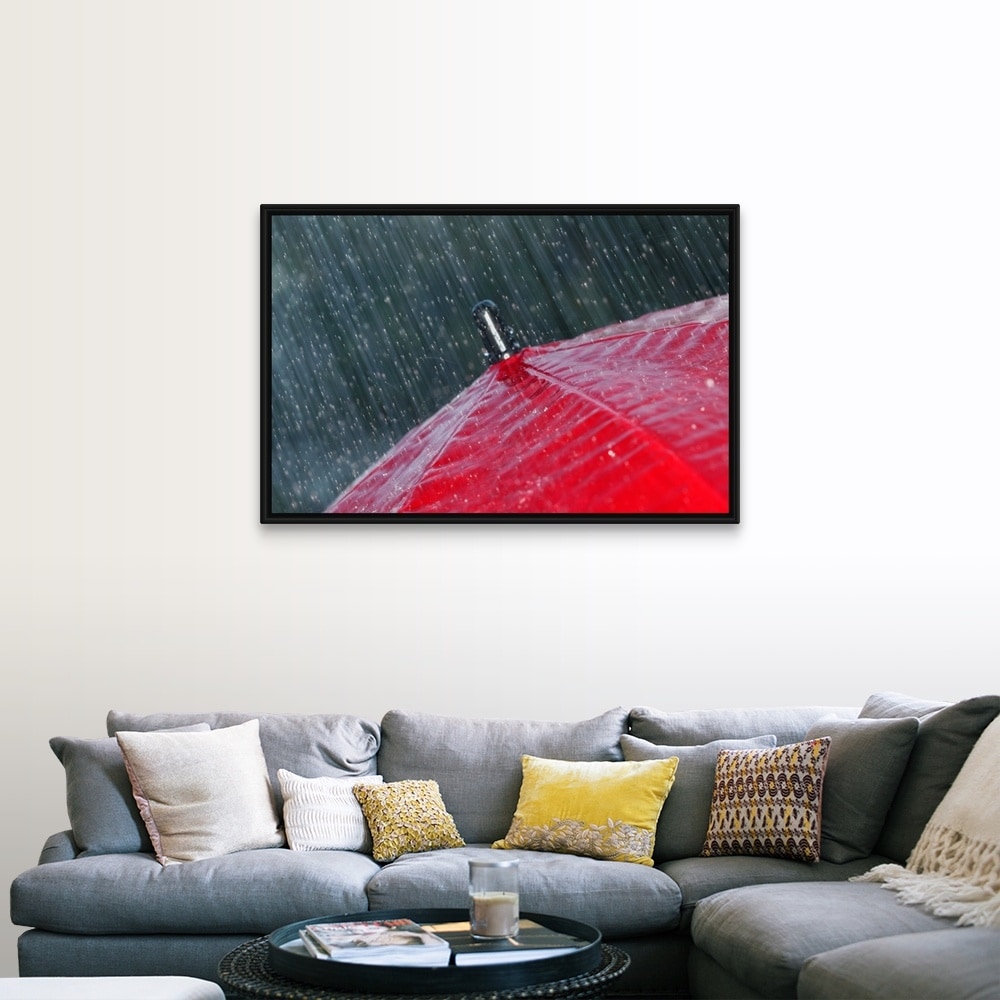 "Rain falling on umbrella" Black Float Frame Canvas Art