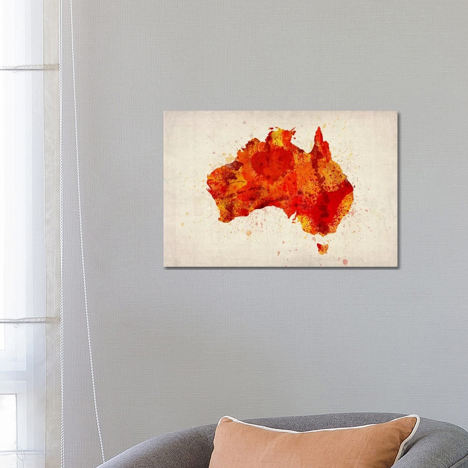 iCanvas "Map of Australia (Red) Paint Splashes" by Michael Tompsett Canvas Print