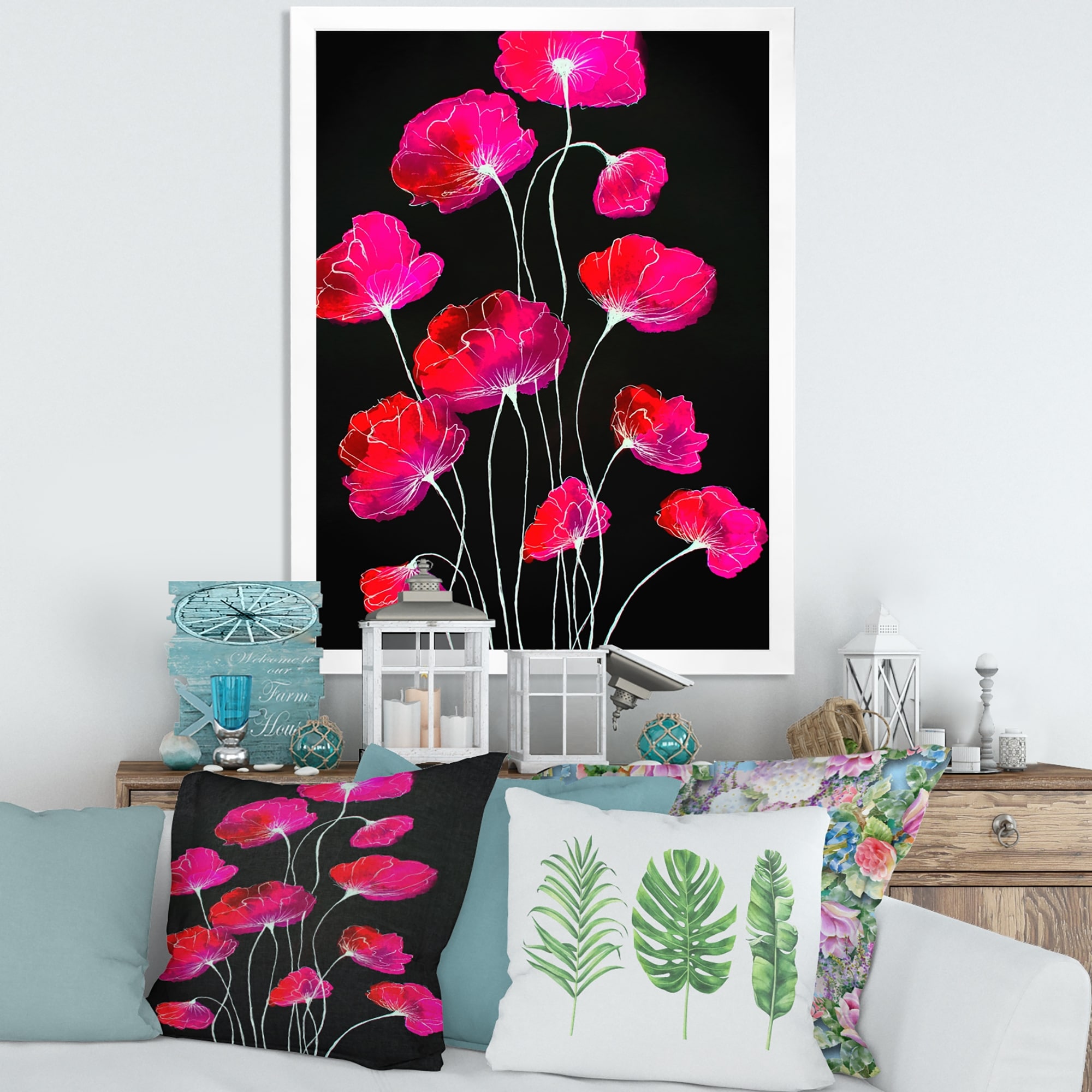 Floral Paradise II -Framed Print w/glass-Cherry Red