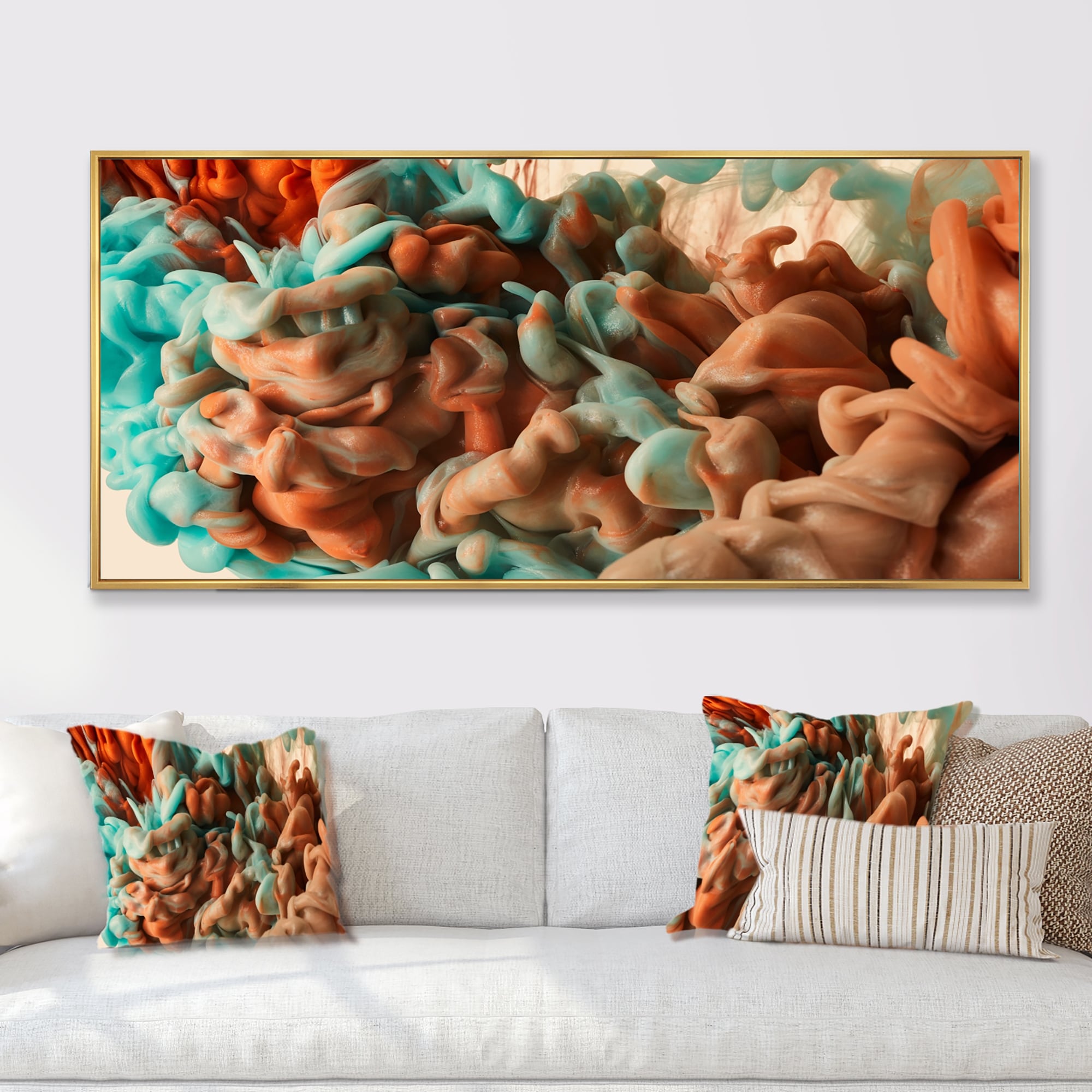 Designart "Red And Pink Liquid Ink Art" Abstract Framed Canvas artwork