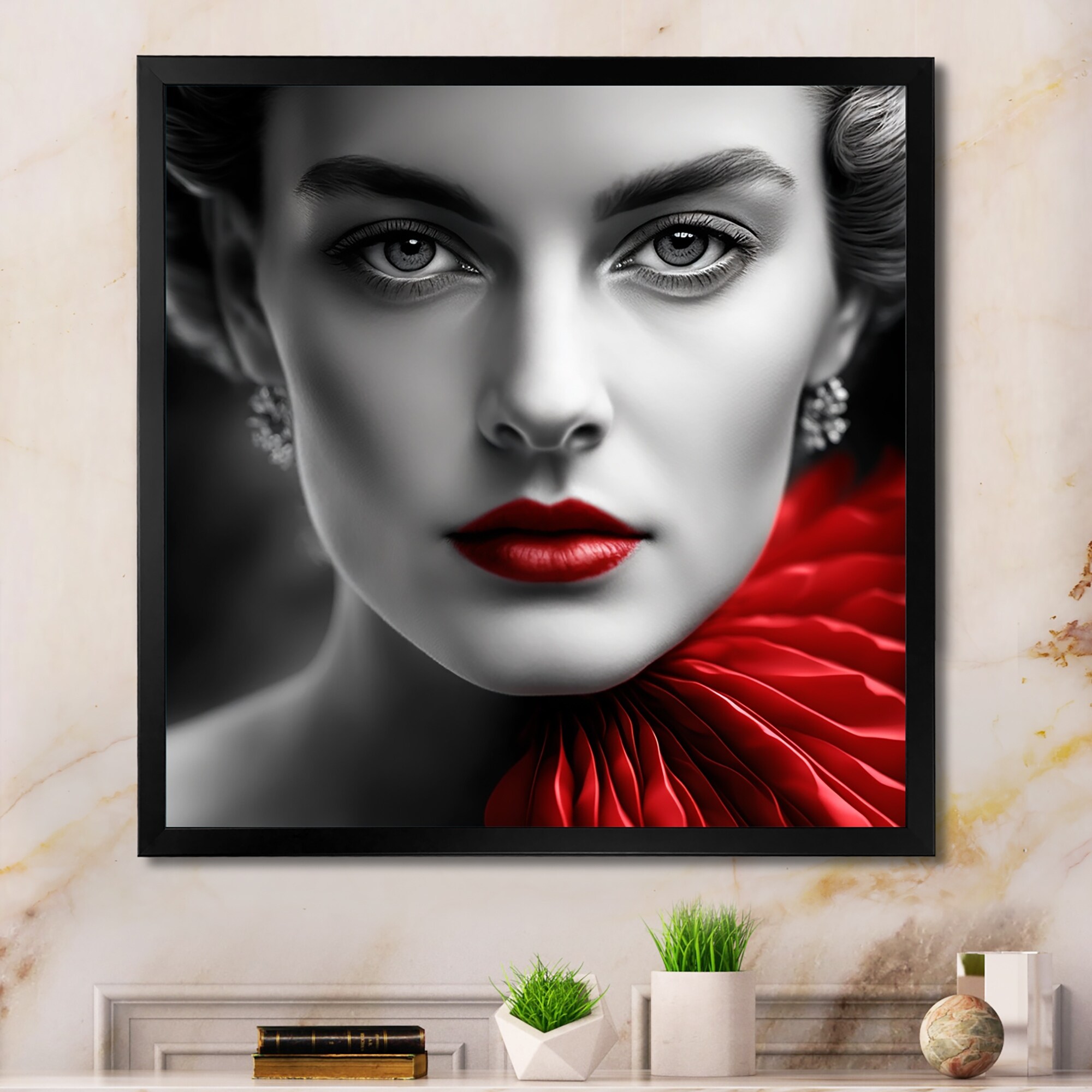 Designart "Retro Graciousness in Black And Red III" Fashion Woman Framed Art Print