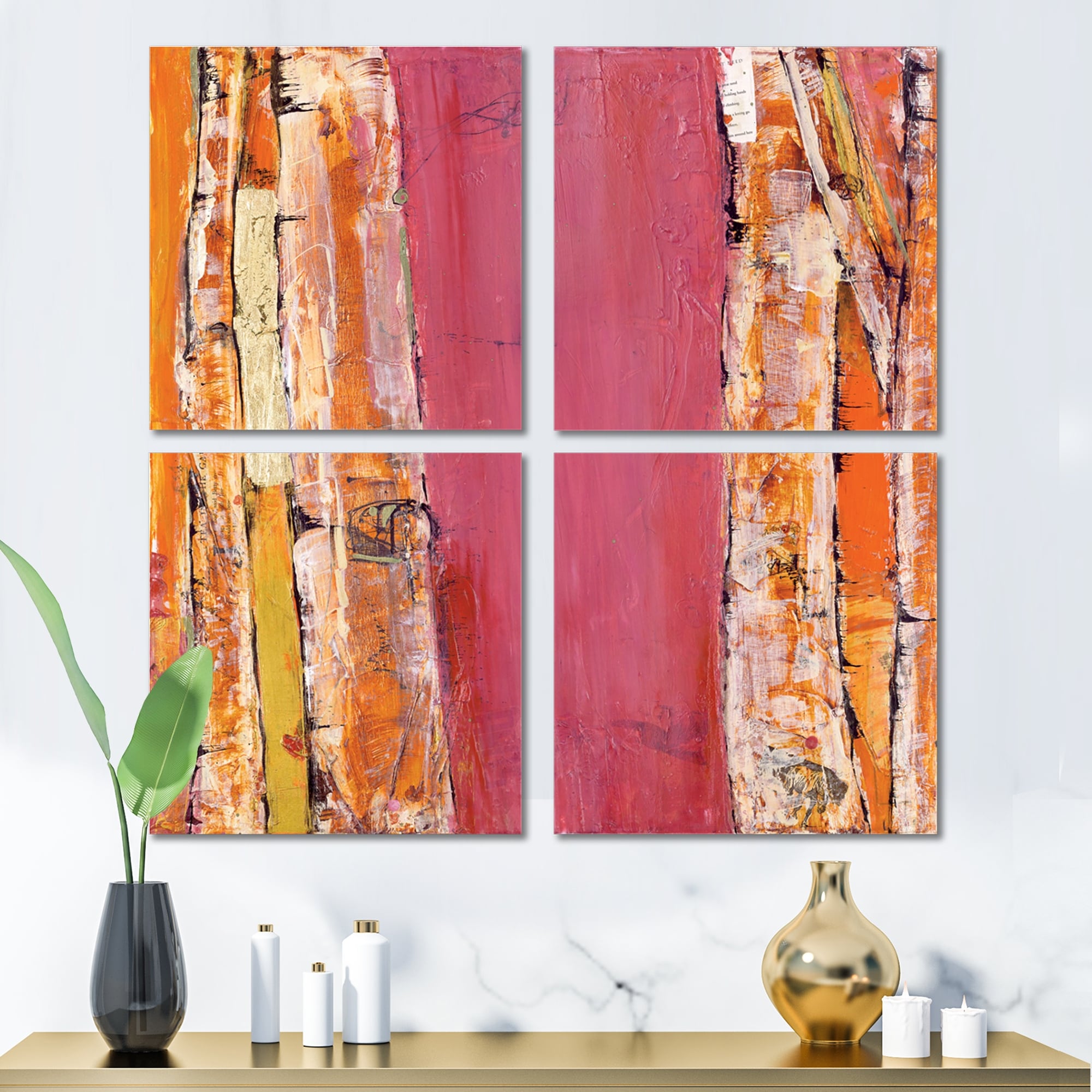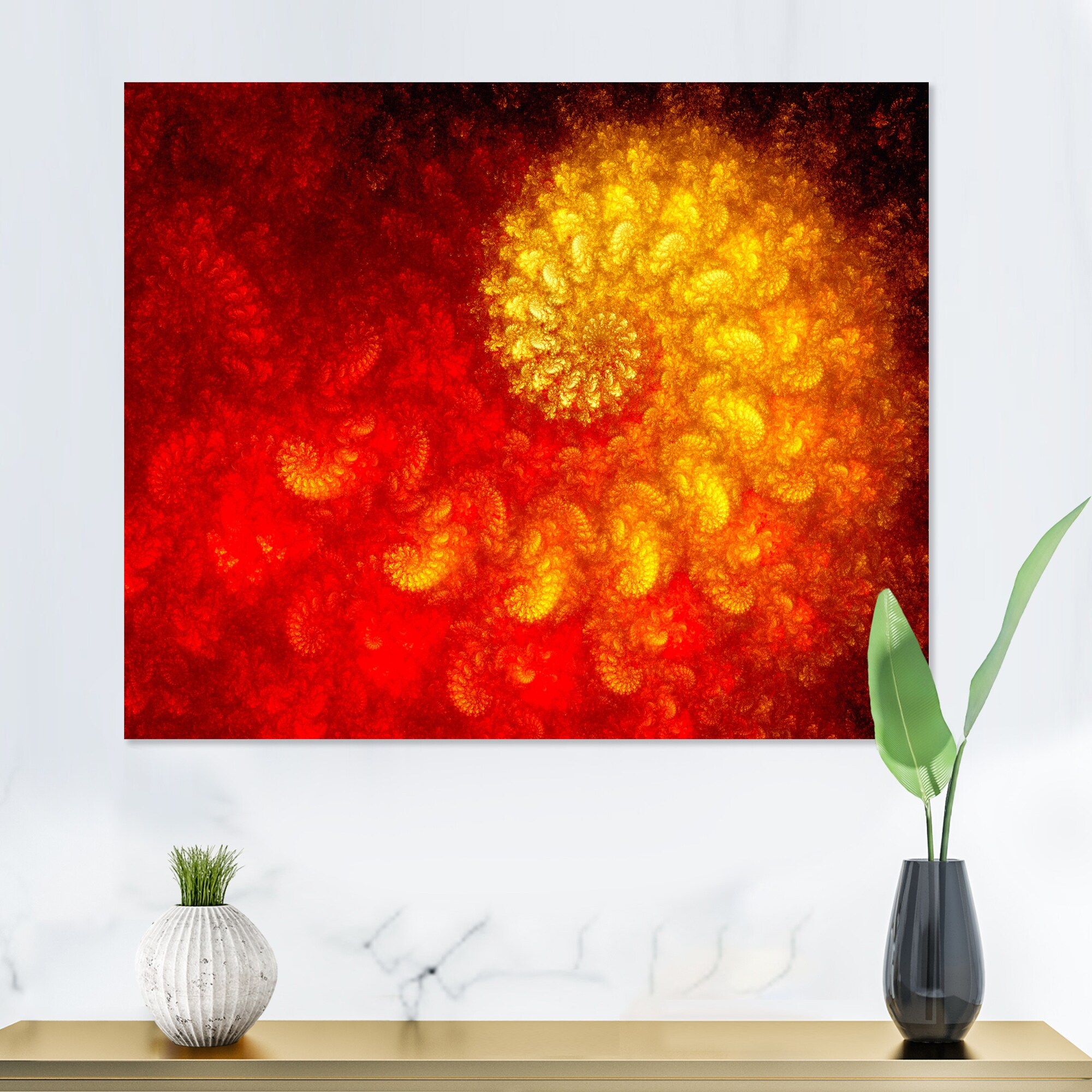 Designart "Glamorous Composition of Red and Gold" Mid-Century Modern Canvas Wall Art Print