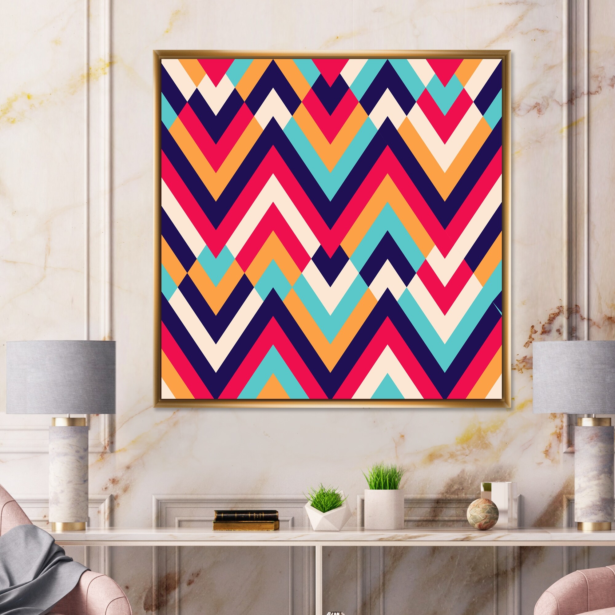 Designart "Blue Red And Fuchia eGometric Rhombus" Patterned Framed Canvas Wall Art Print