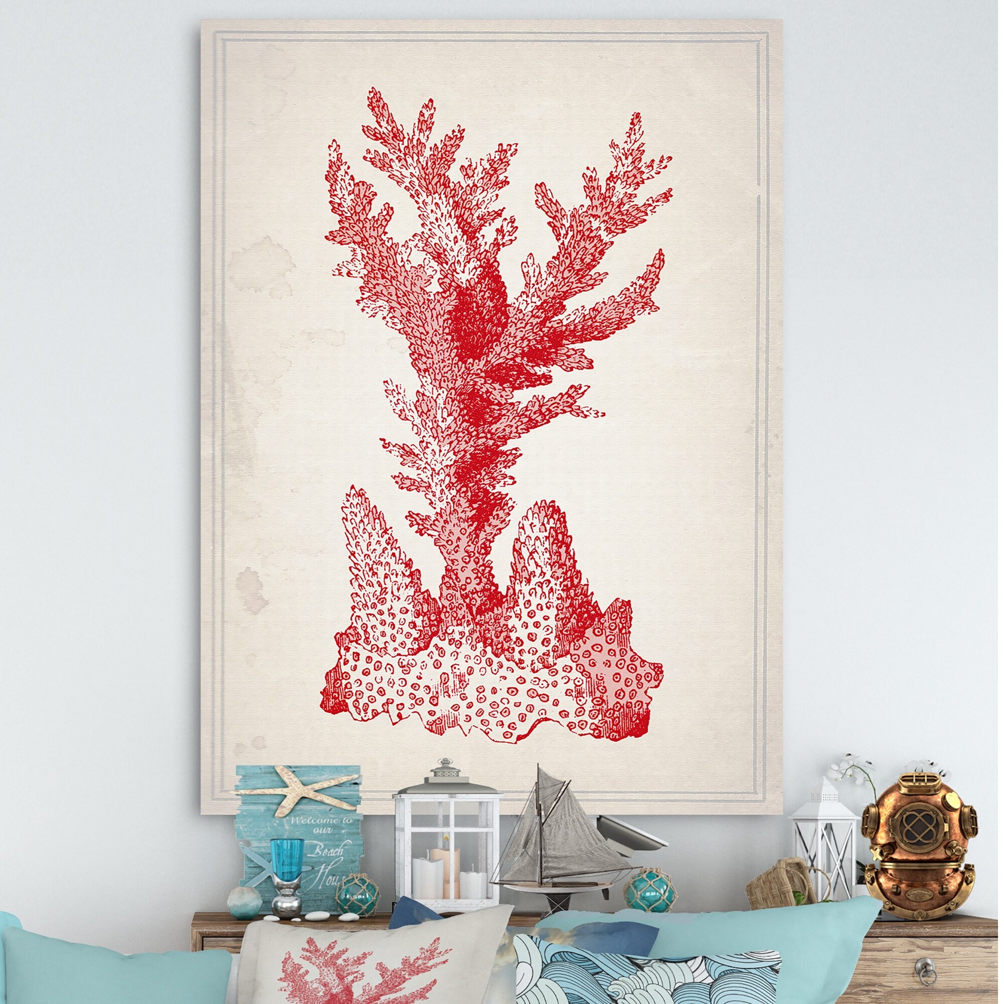 Designart "Red Coral 1" Nautical & Coastal Canvas Wall Art