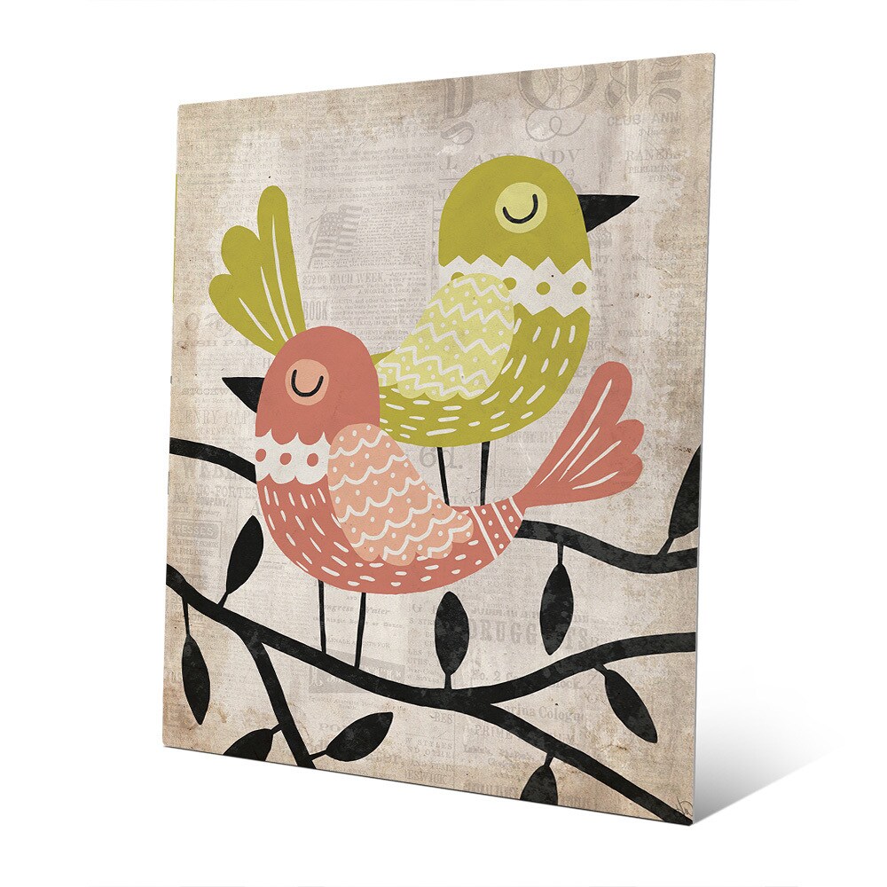 'Fancy Birds Yellow and Red' Aluminum Wall Art Print