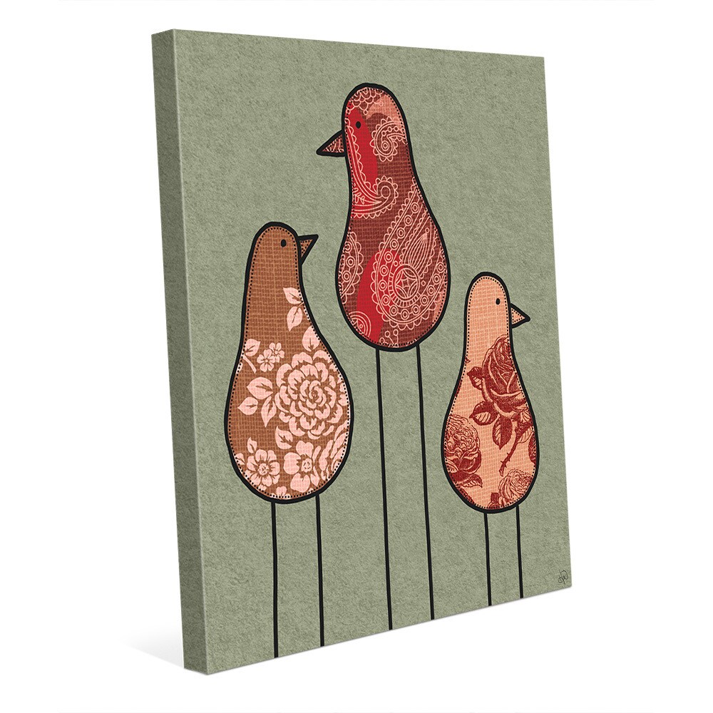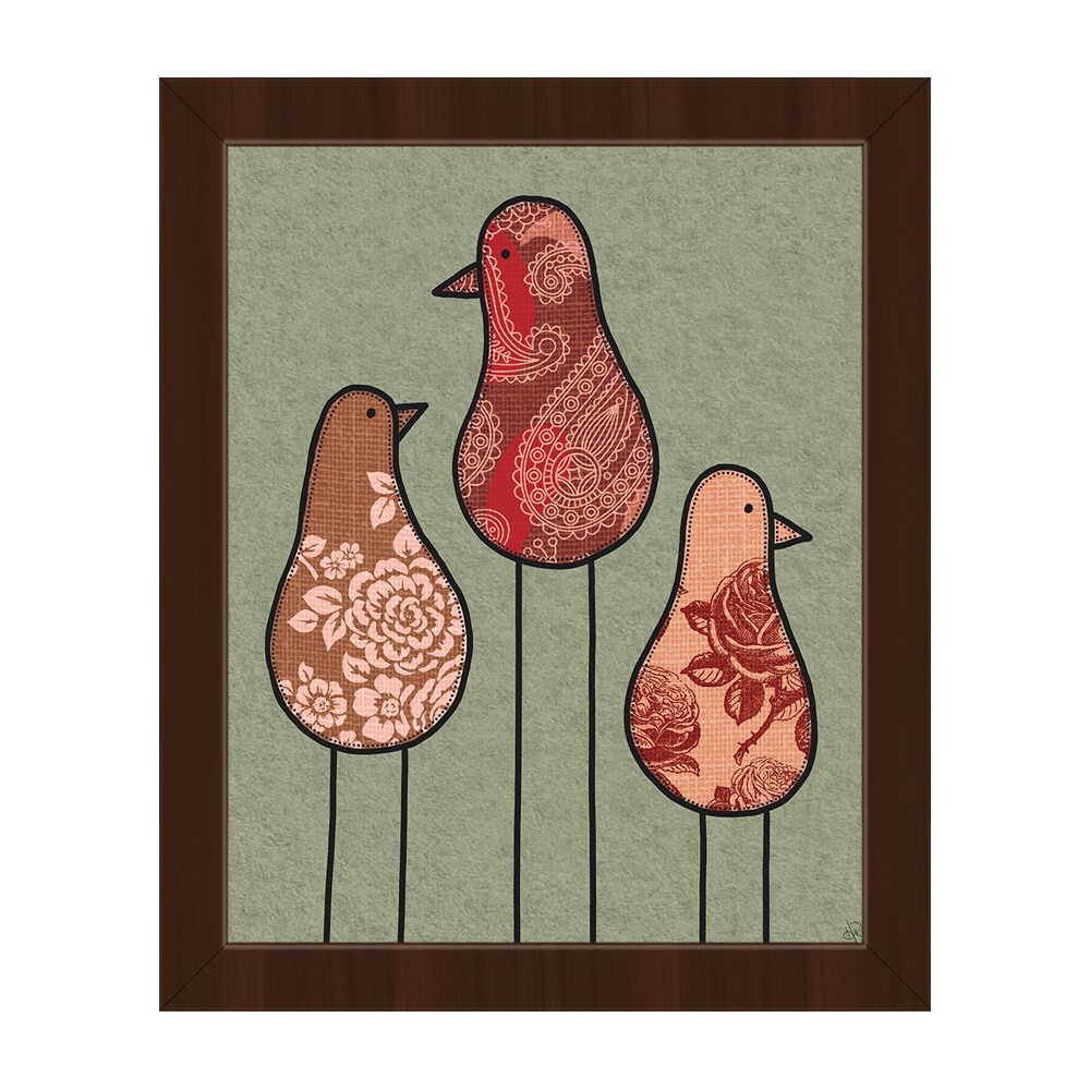 Patchwork Birds Red Framed Canvas Wall Art Print