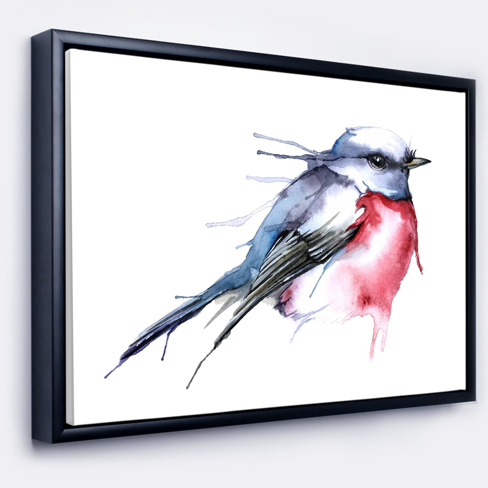 Designart "Bird in Blue and Red" Watercolor Animal Framed Canvas Art Print