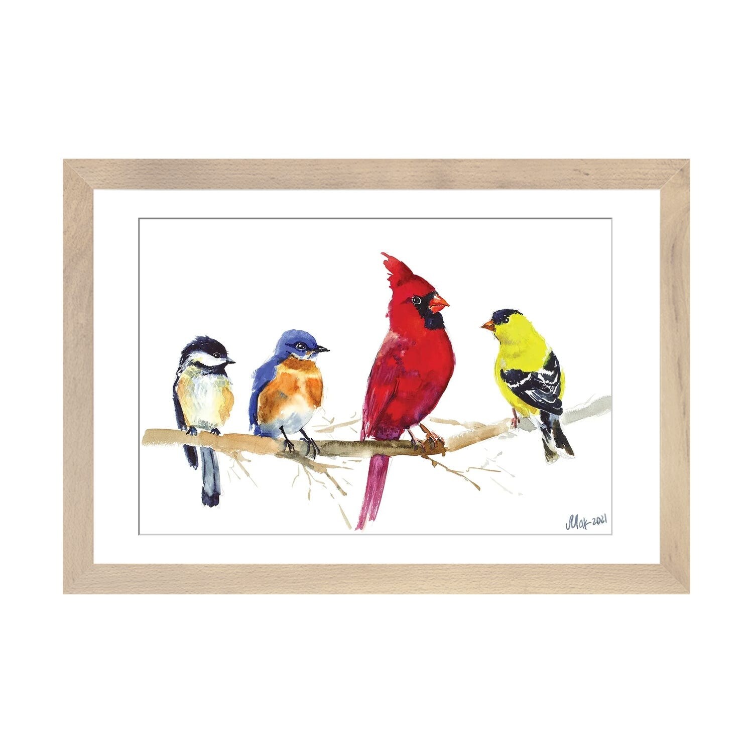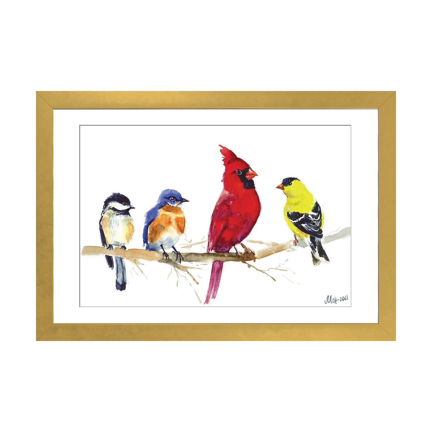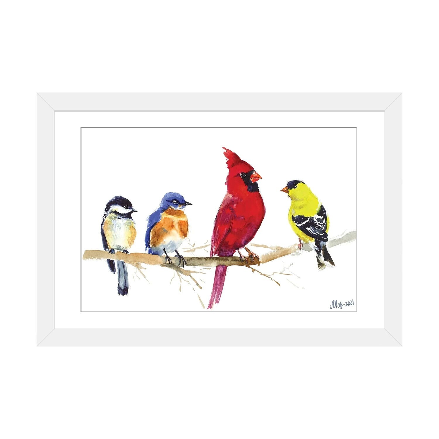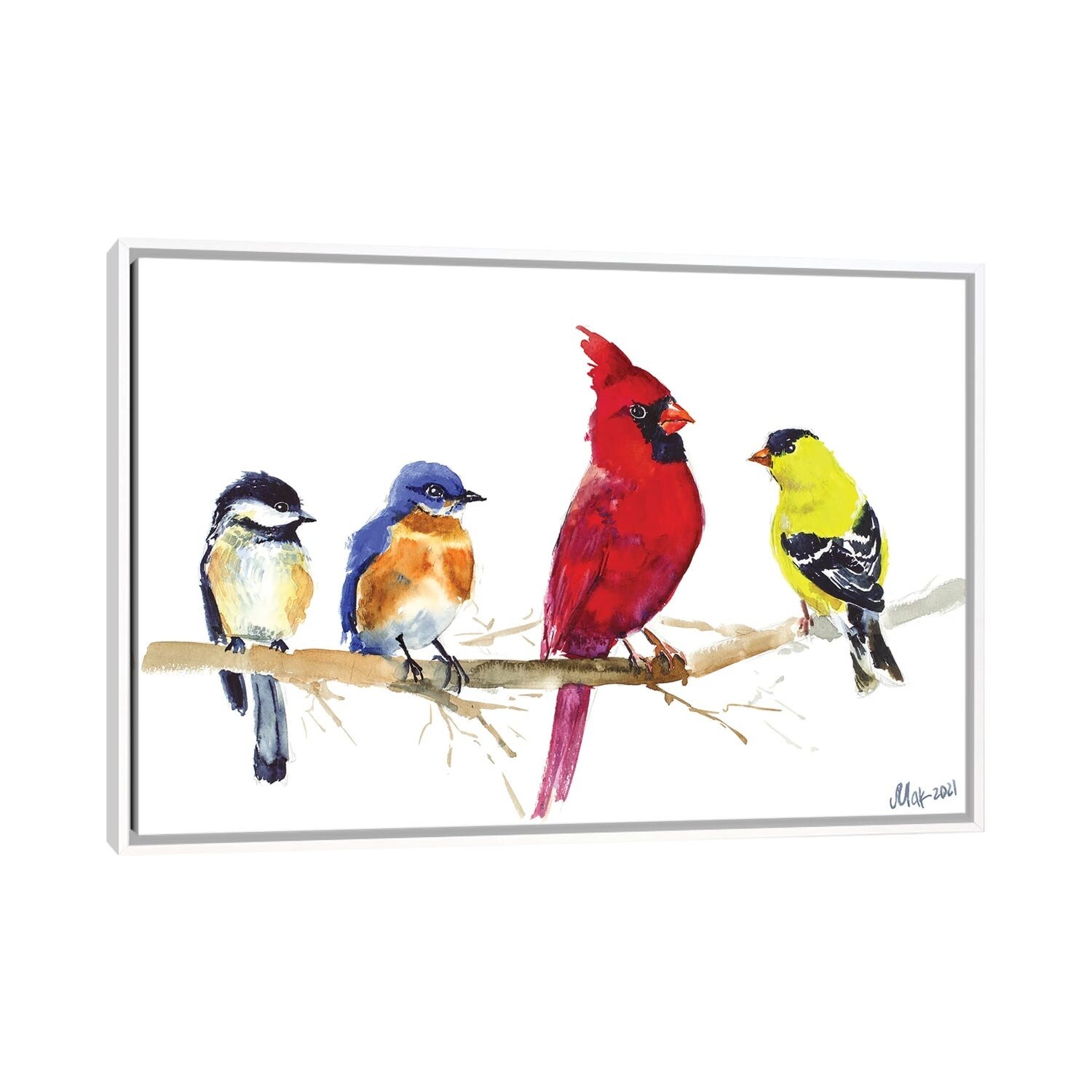 iCanvas "Birds On Wire - Red Cardinal, Chickadee, Goldfinch, Bluebird" by Nataly Mak Framed Canvas Print