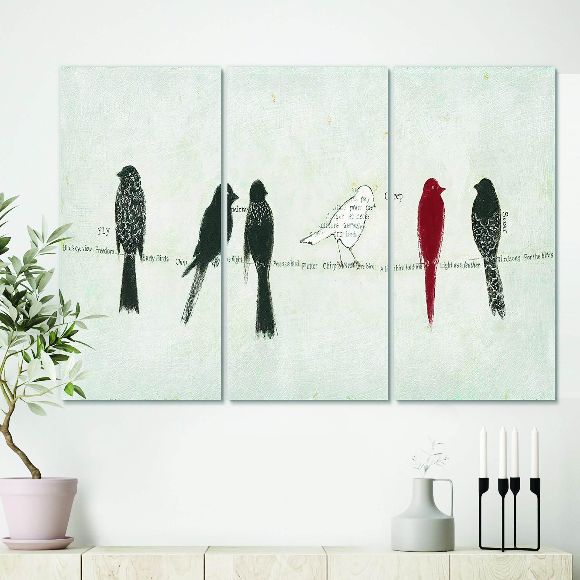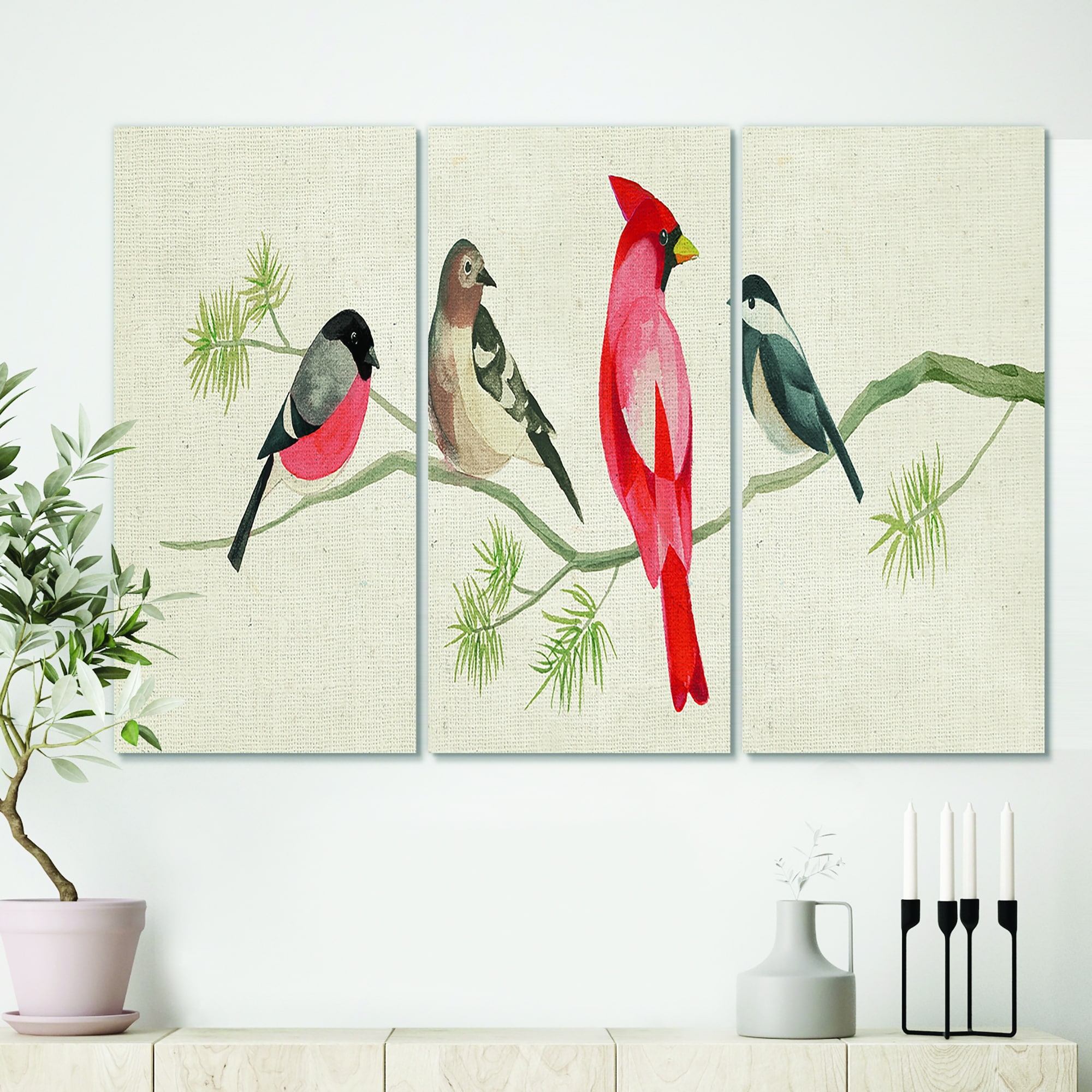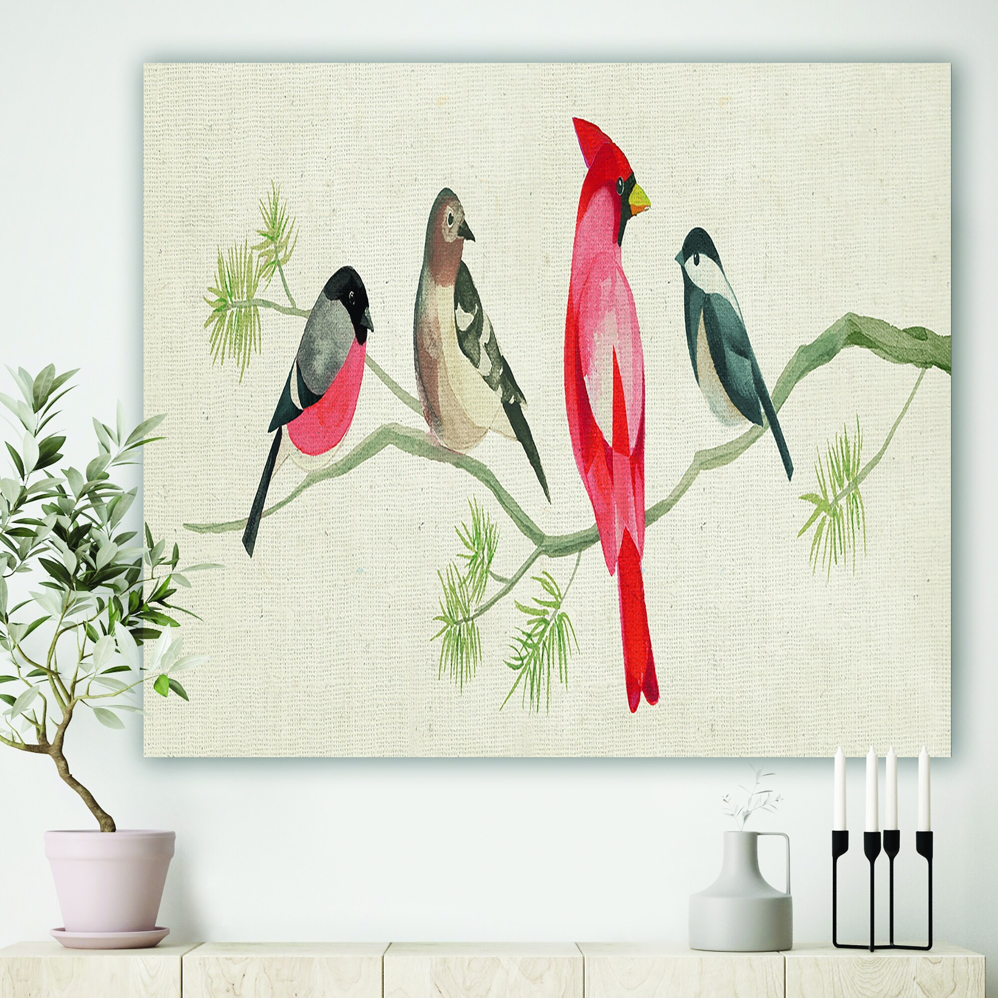 Designart "Red Catching Up Bird Family" Farmhouse Canvas Art