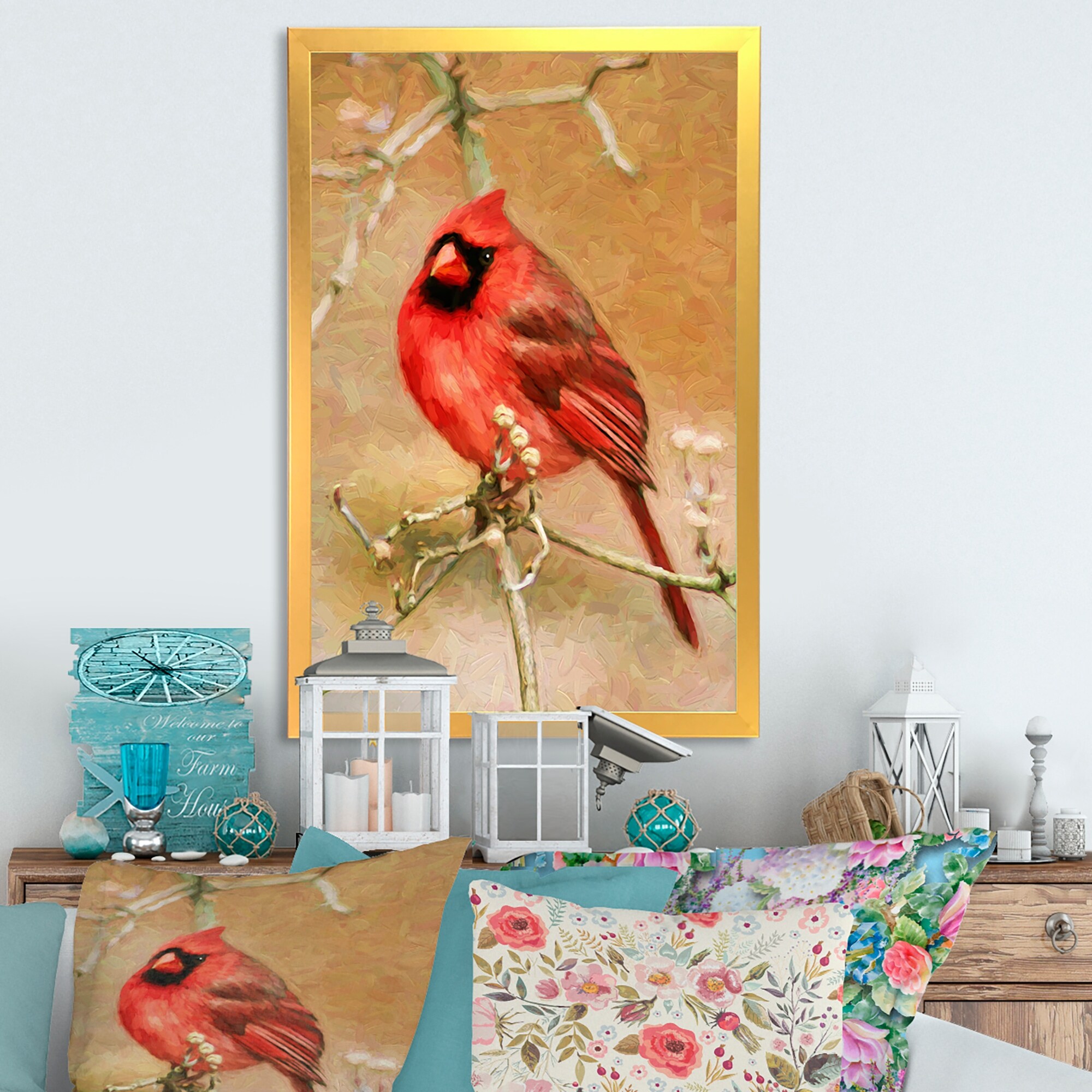Designart "Grunge Red Cardinal Bird" Traditional Framed artwork