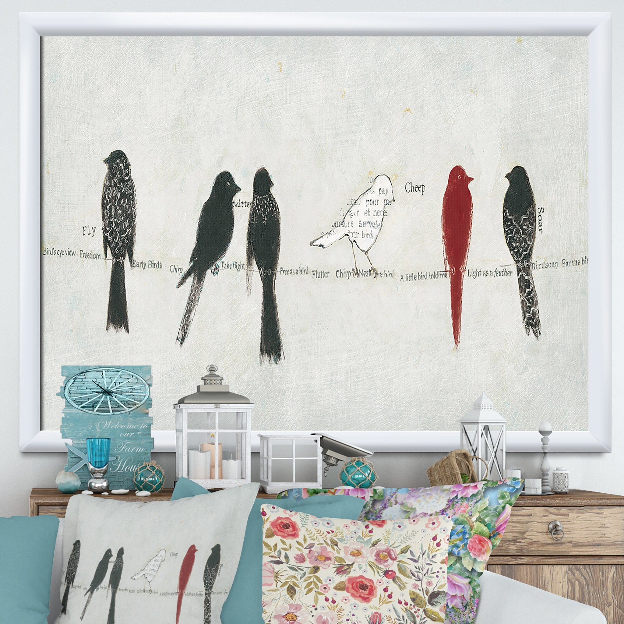 Designart "Red Catching Up Bird Family" Farmhouse Framed Art Print