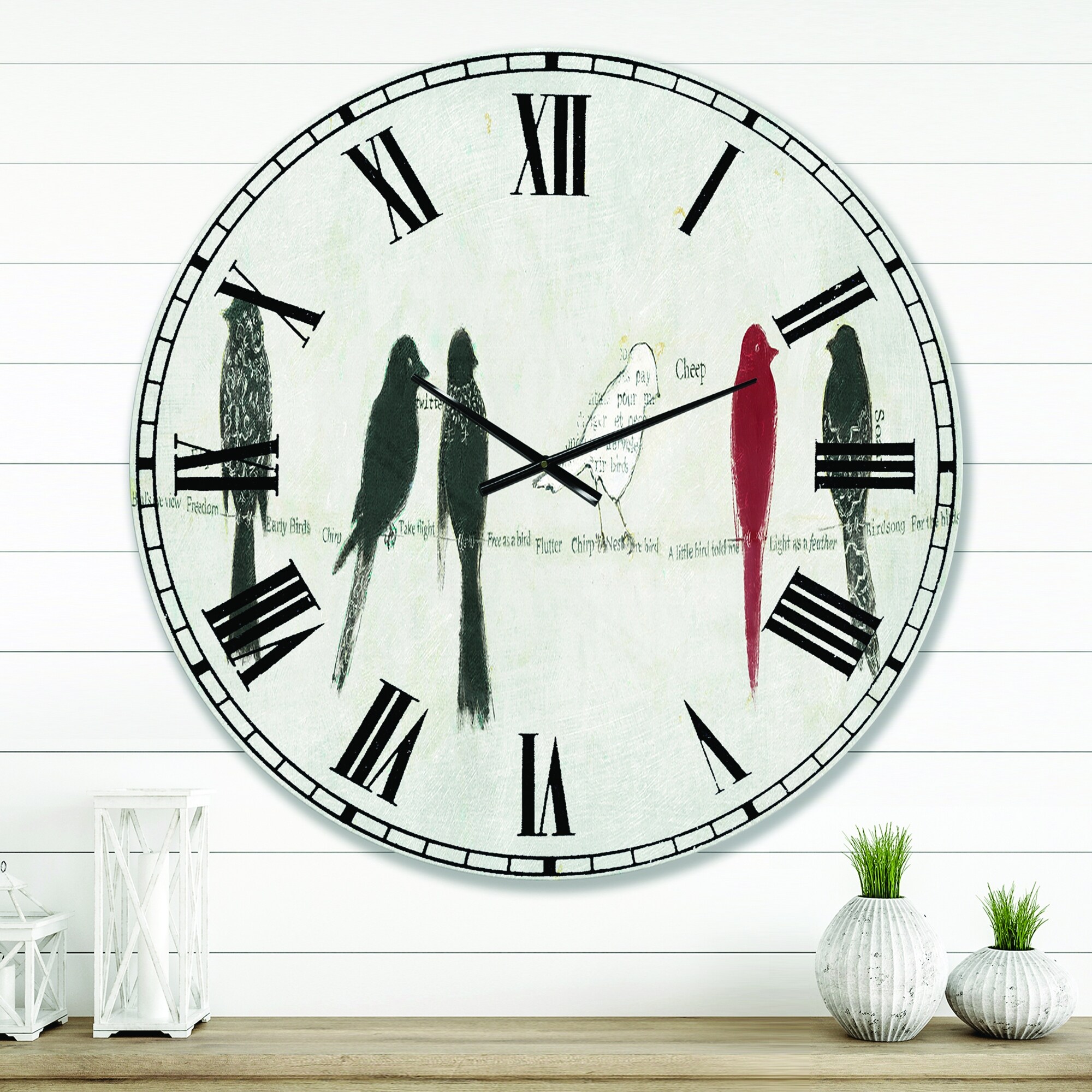 Designart 'Red Catching Up Bird Family' Farmhouse Oversized Wall CLock